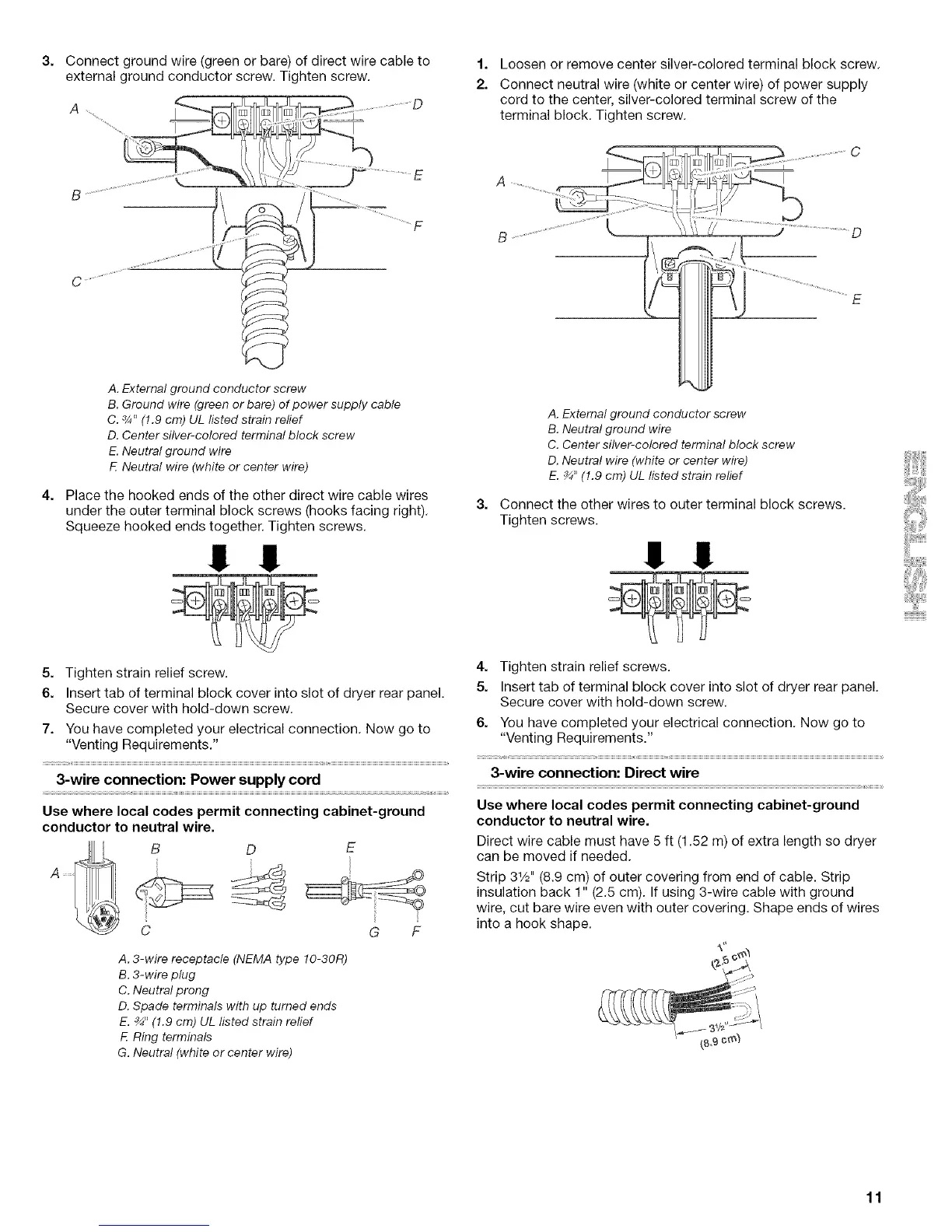Direct wire cable must have 5 ft (1.52 m) of extra length so dryer