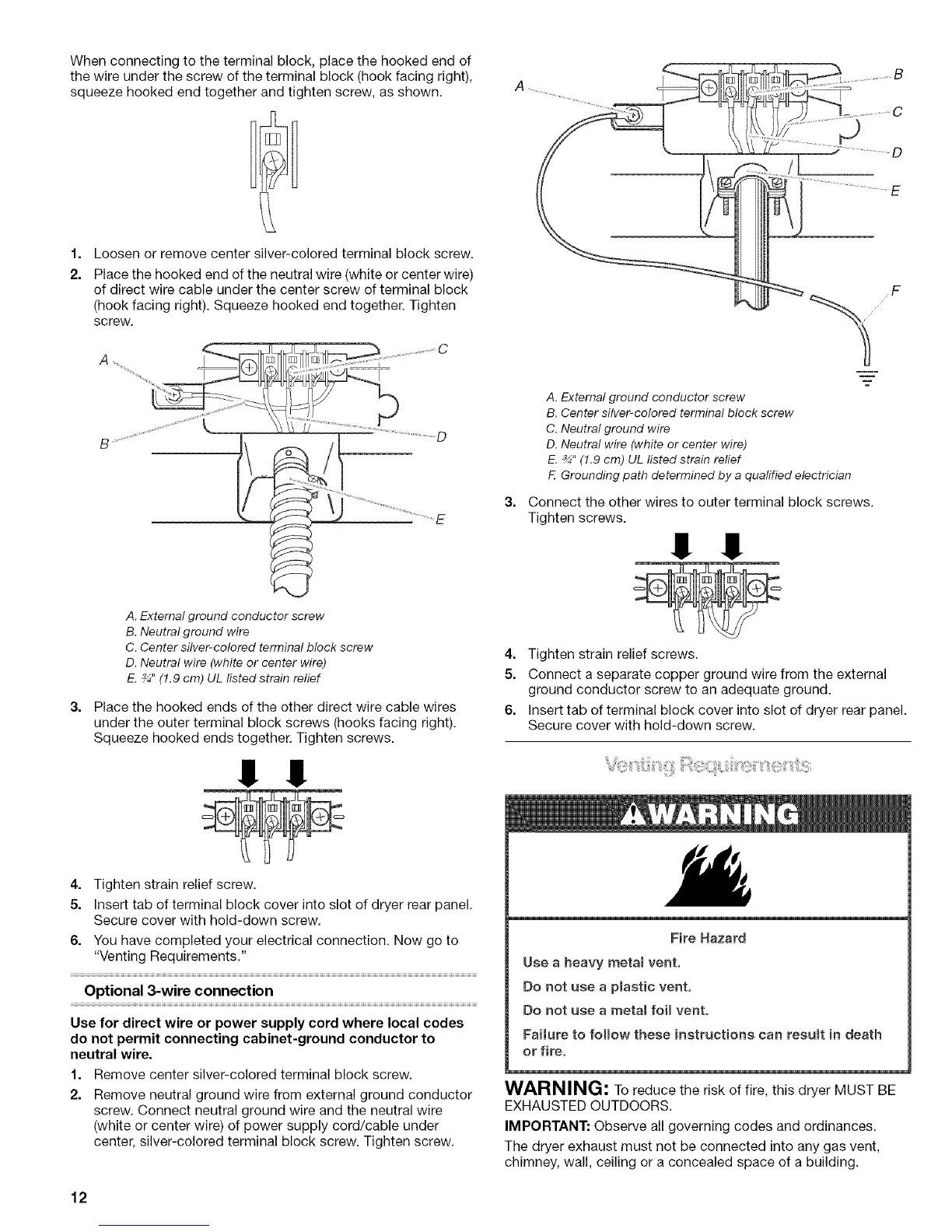 WARNING: To reduce the risk of fire, this dryer MUST BE
