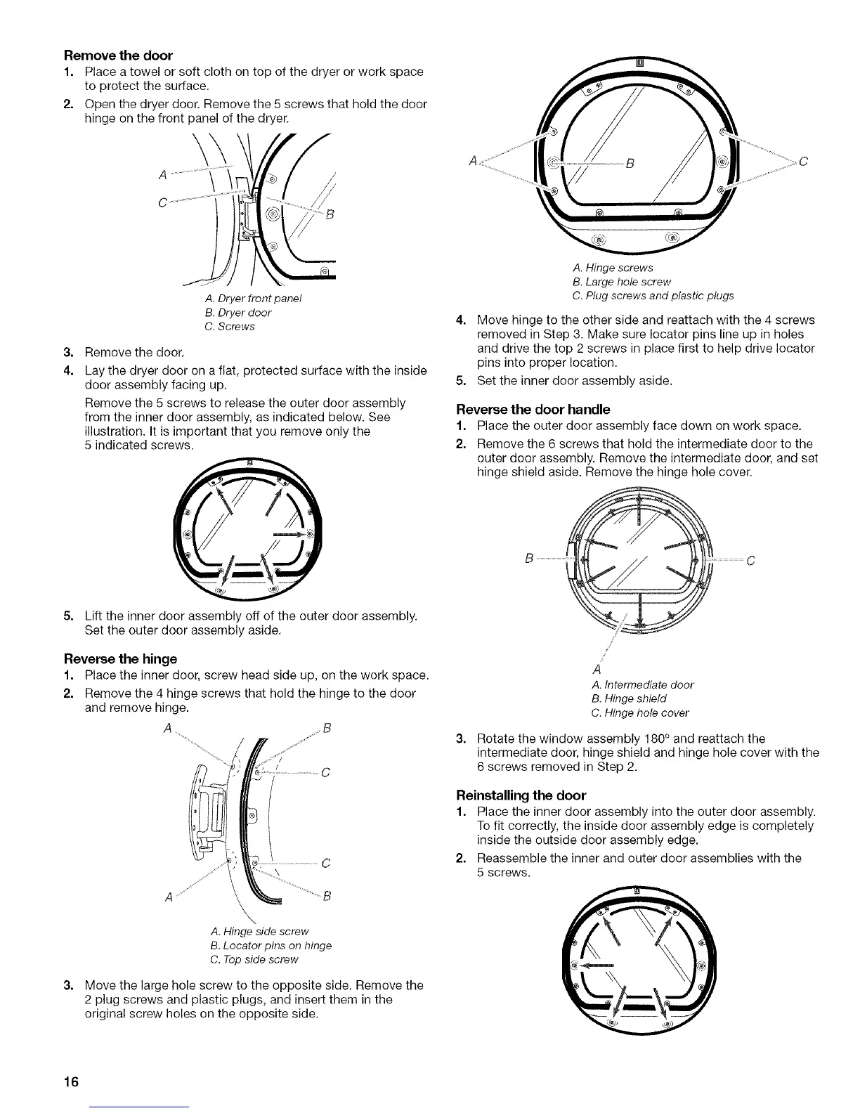 2. Open the dryer door. Remove the 5 screws that hold the door