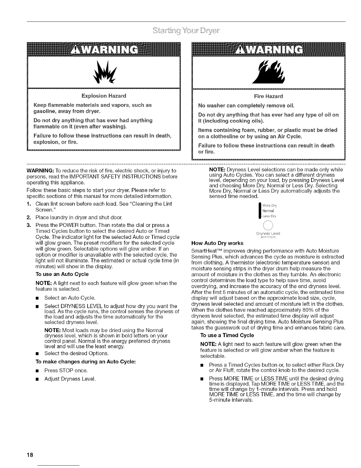 NOTE: Dryness Level selections can be made only while