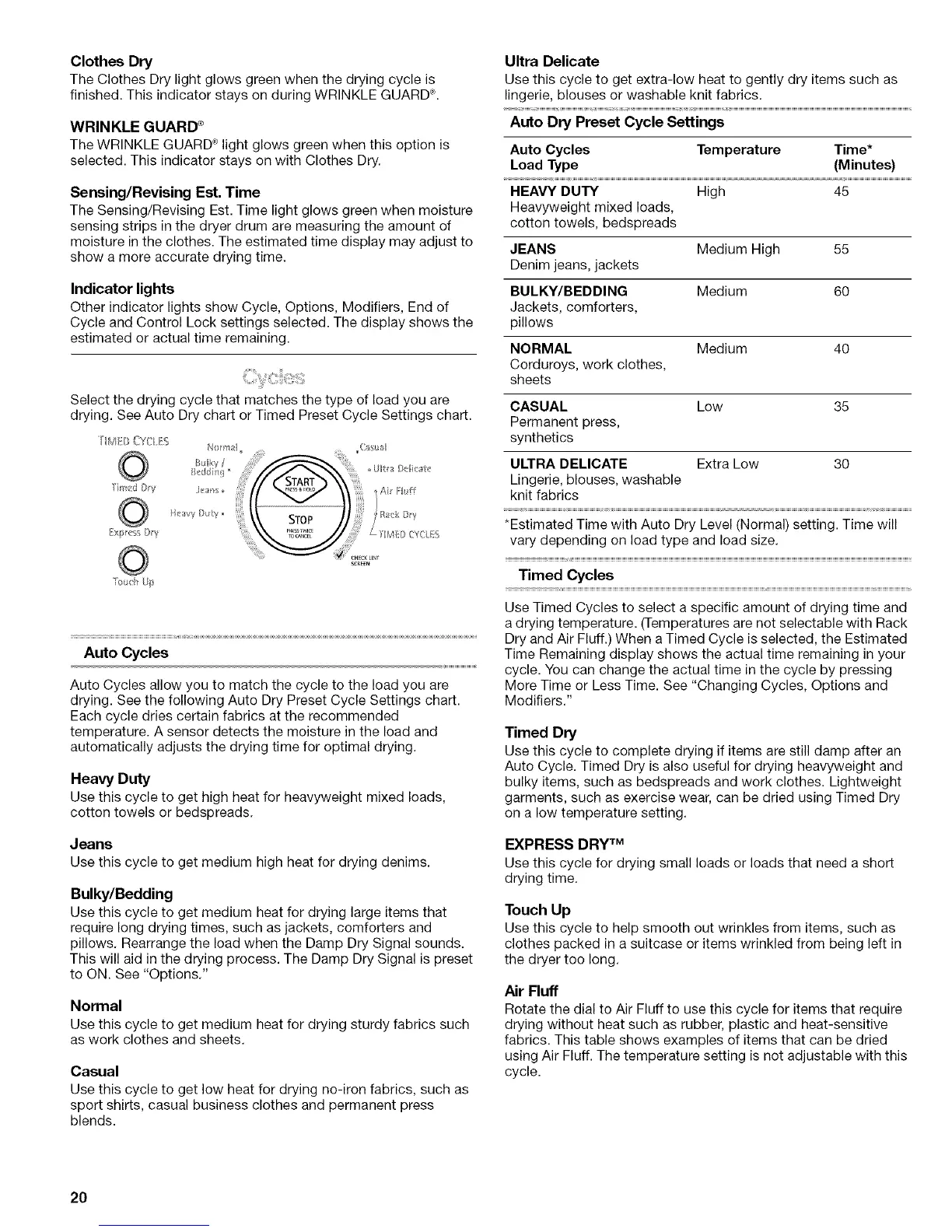 Auto Cycle. Timed Dry is also useful for drying heavyweight and