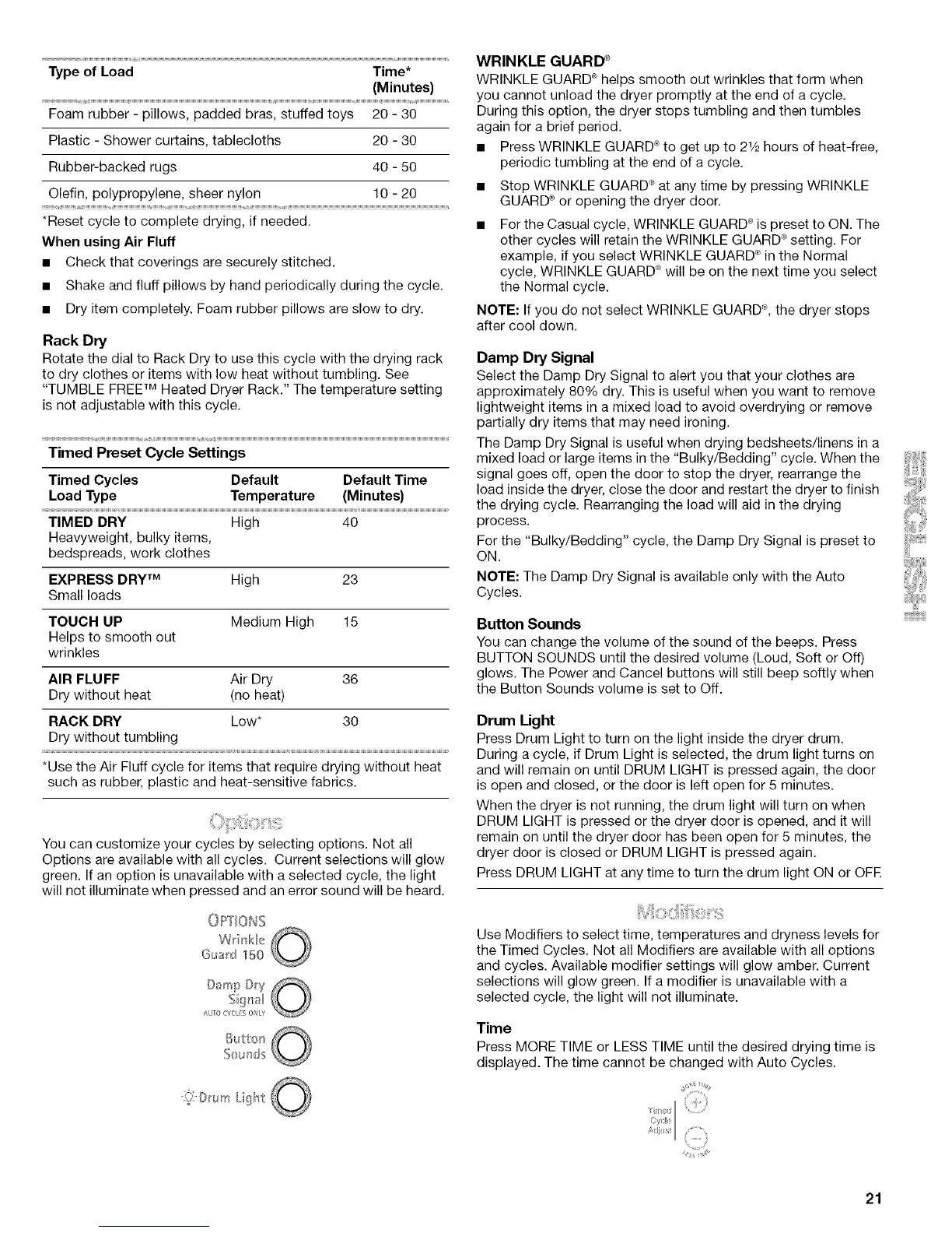 NOTE: If you do not select WRINKLE GUARD _, the dryer stops
