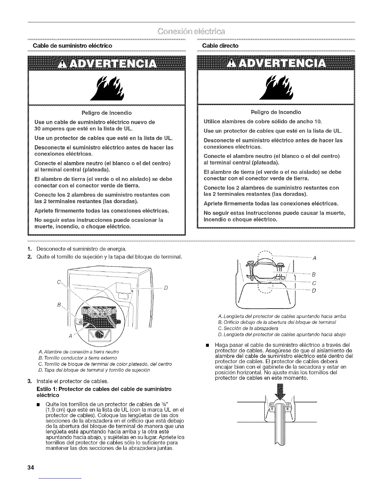 2. ©uite el tornillo de suieci6n y la tapa del bloque de terminal.