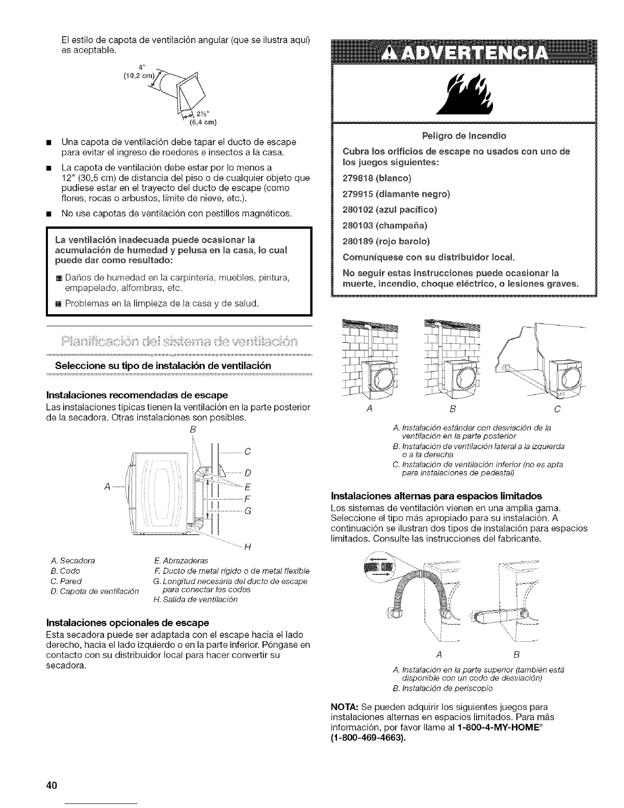 Esta secadora puede ser adaptada con el escape hacia el lade