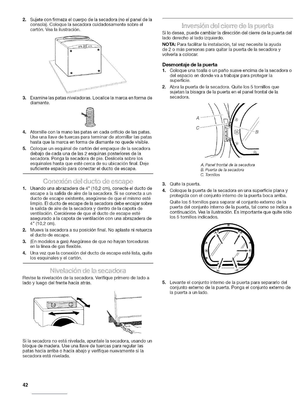Revise la nivelacidn de la secadora. Verifique primero de lado a