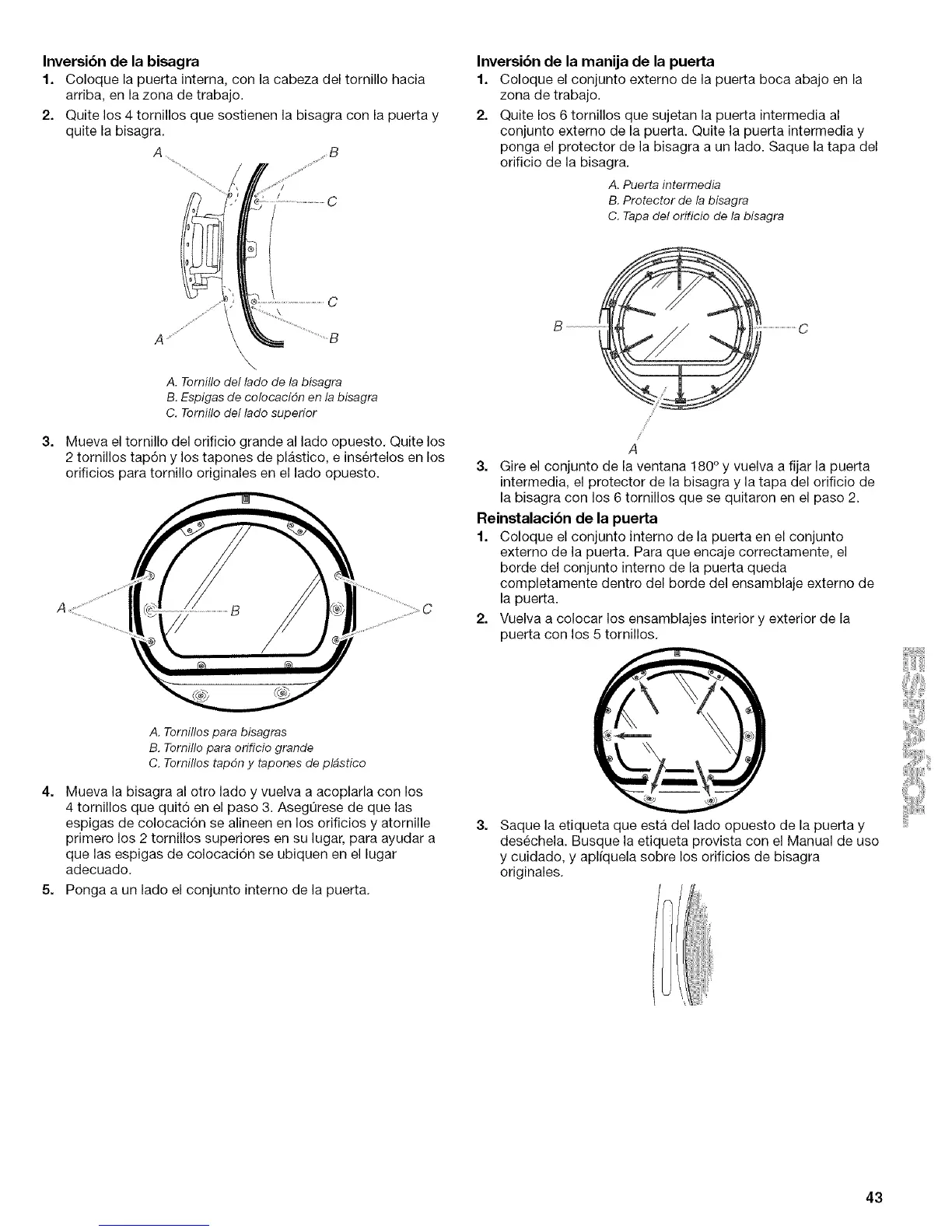 4. Mueva la bisagra al otro lado y vuelva a acoplarla con los