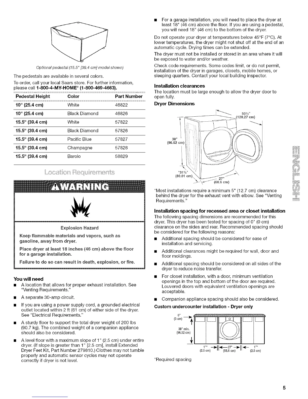 dryer. This dryer has been tested for spacing of 0" (0 cm)