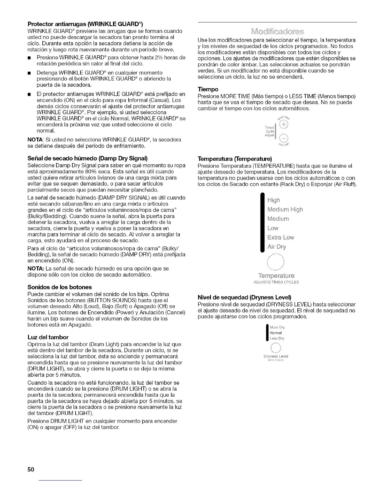NOTA: Si usted no selecciona WRINKLE GUARD ®,la secadora