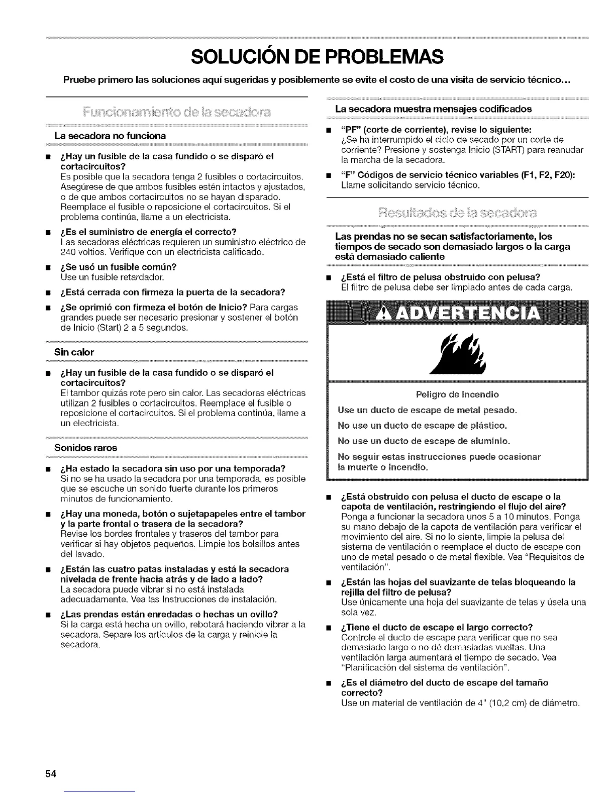 sistema de ventilaci6n o reemplace el ducto de escape con