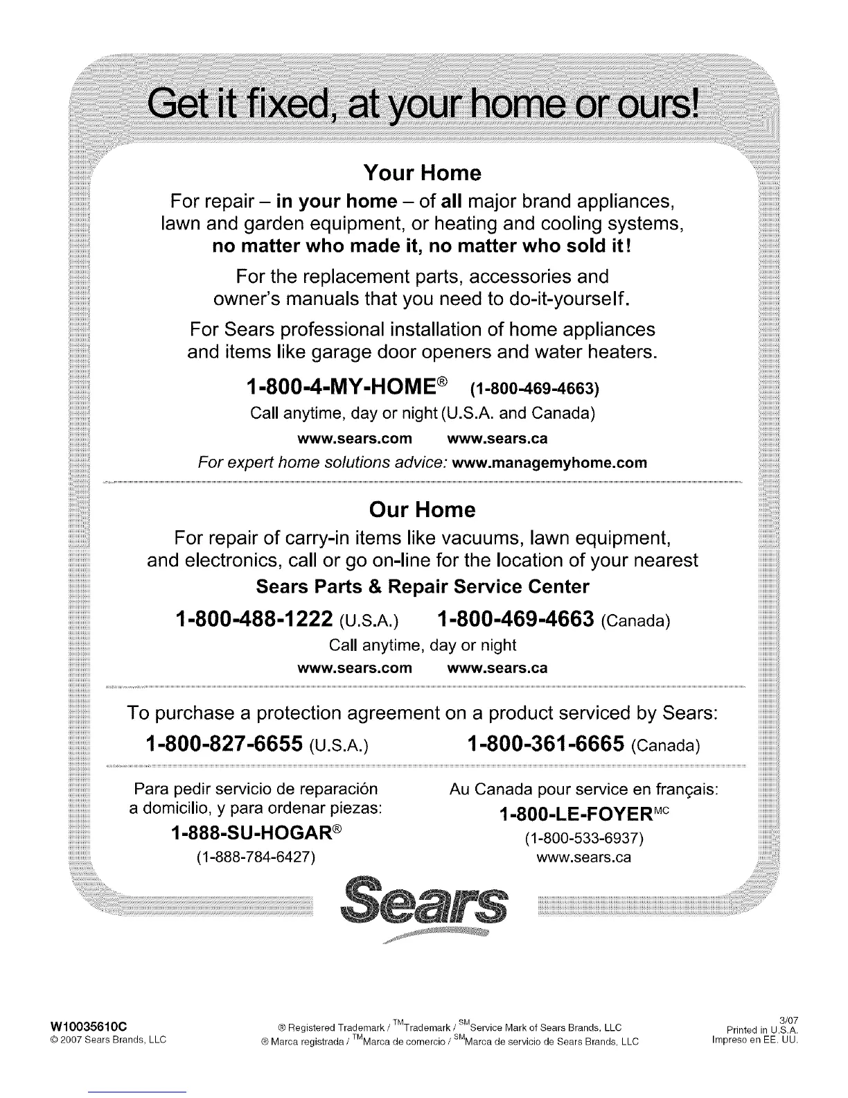Sears Parts & Repair Service Center iiiiiiiiiiiiiii