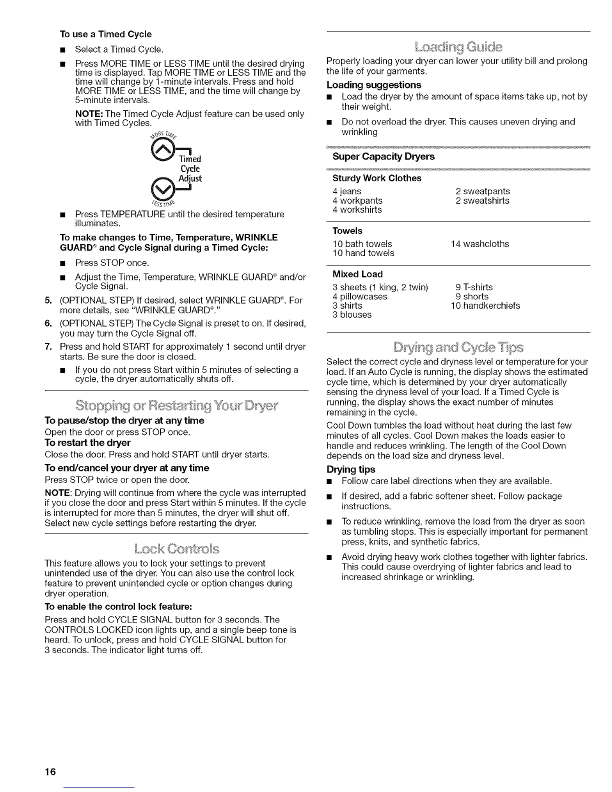 sensing the dryness level of your load. If a Timed Cycle is