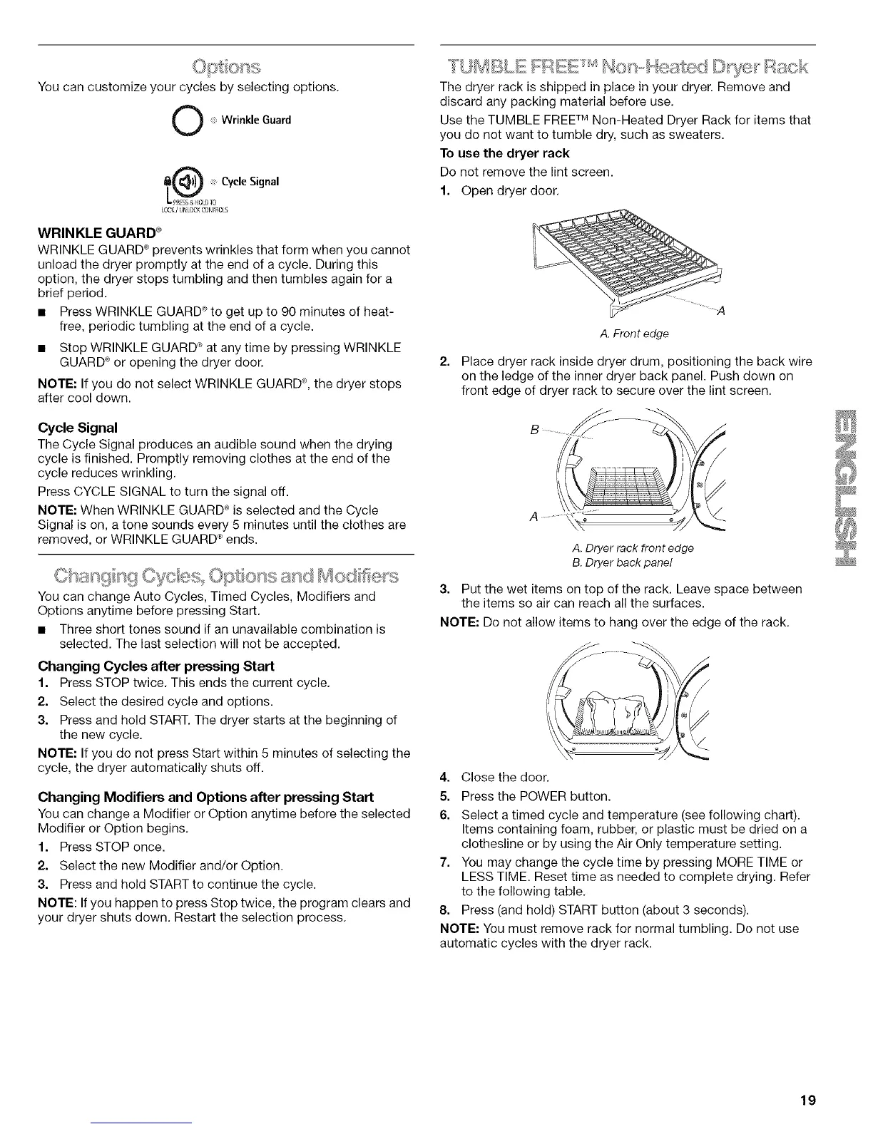 unload the dryer promptly at the end of a cycle. During this