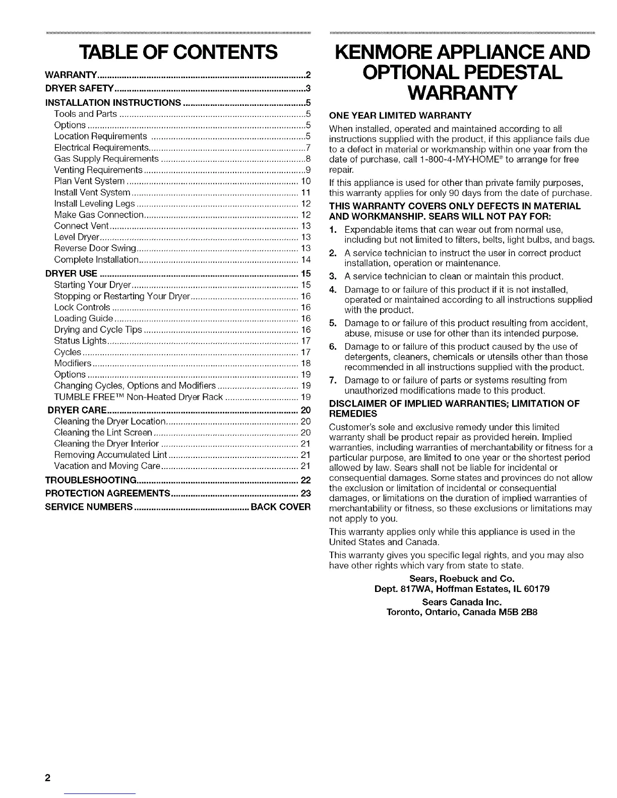 TUMBLE FREF MNon-Heated Dryer Rack .............................. 19