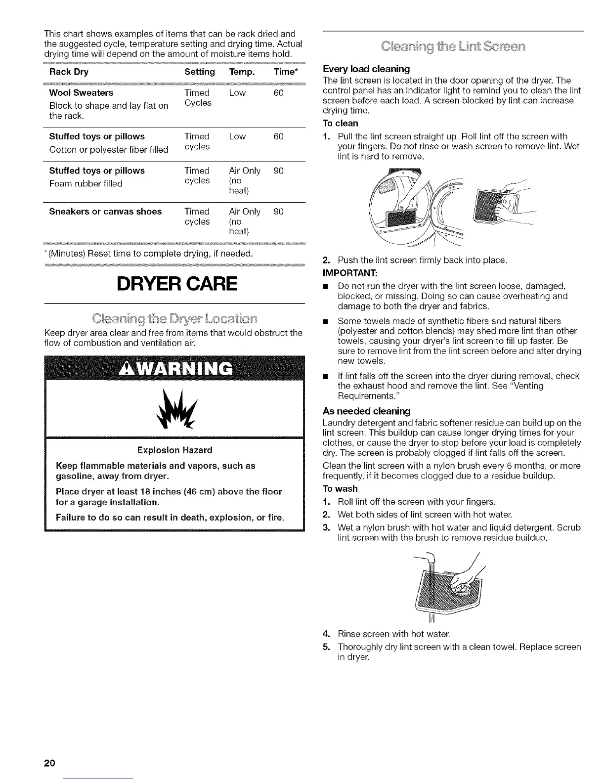 1. Pull the lint screen straight up. Roll lint off the screen with