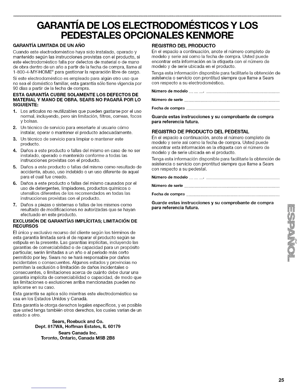 permitido por ley. Sears no se hara responsable per dafios