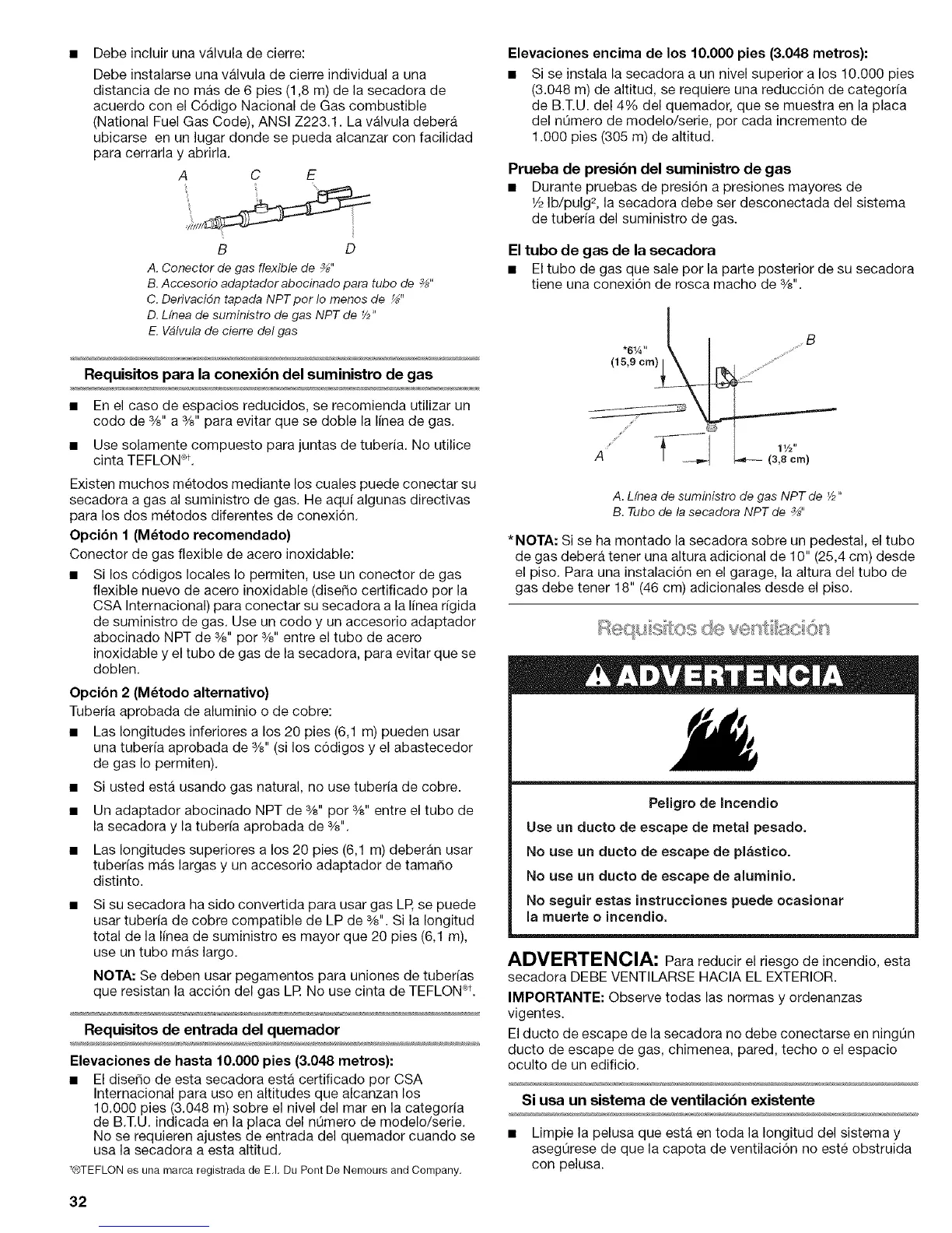 secadora a gas al suministro de gas. He aqui algunas directivas