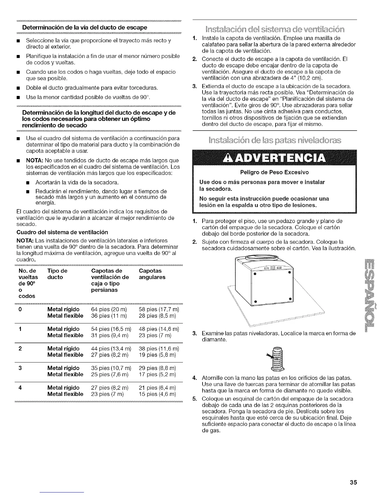 • NOTA: No use tendidos de ducto de escape mas largos que