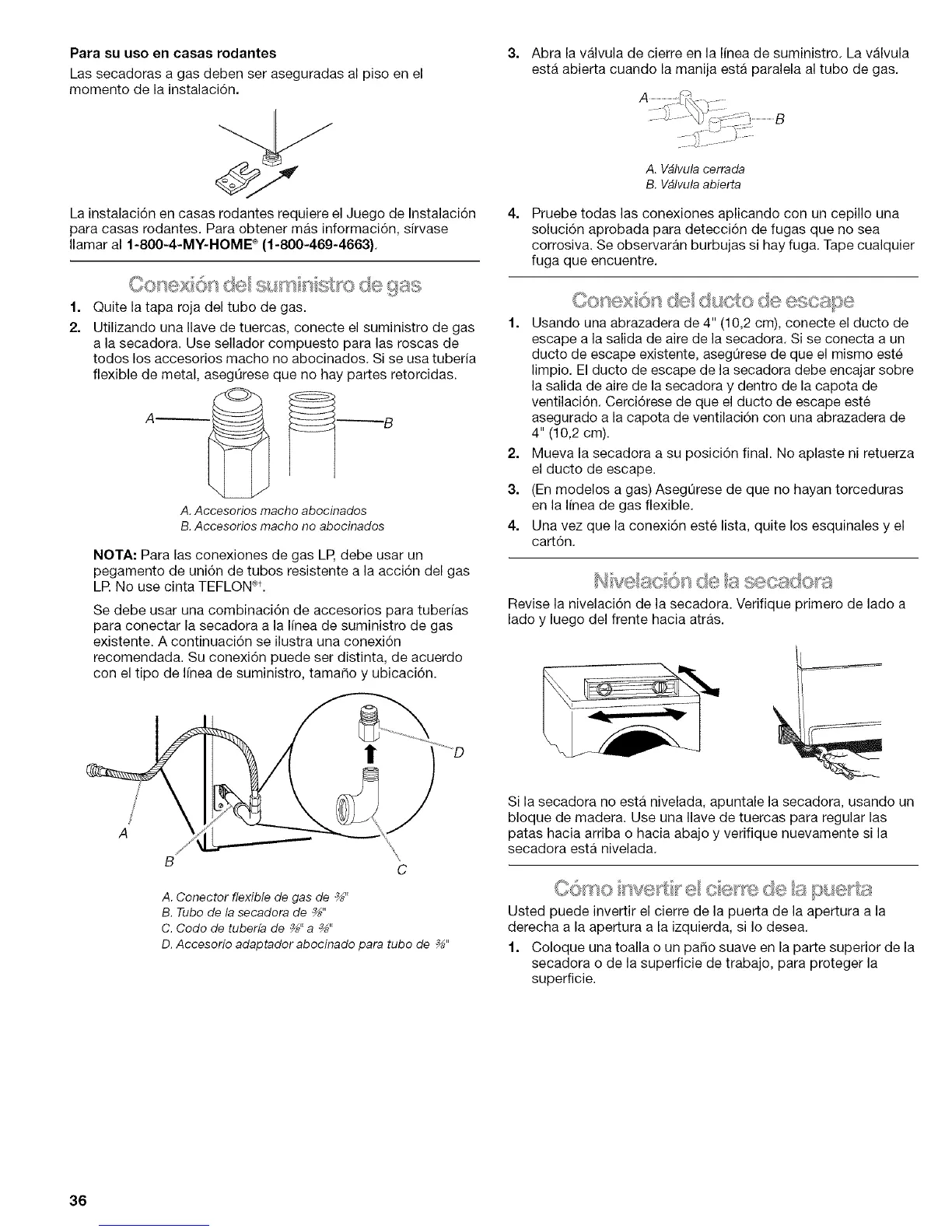 para conectar la secadora a la Ifnea de suministro de gas
