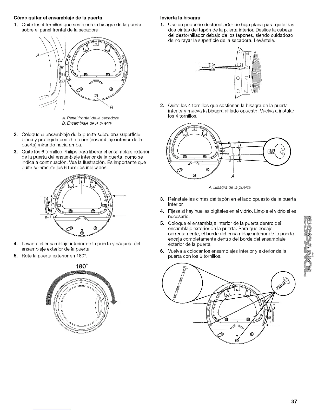 interior y mueva la bisagra al lade opuesto. Vuelva a instalar