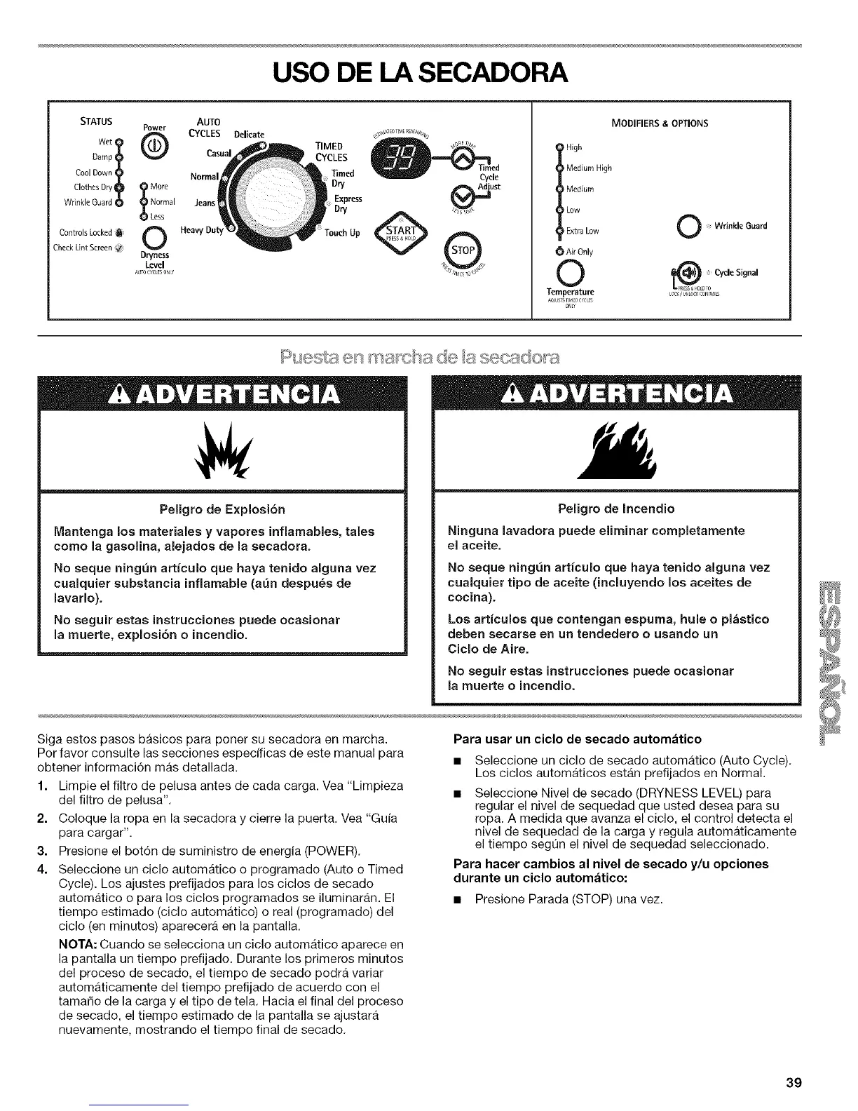• Seleccione un ciclo de secado automatico (Auto Cycle).