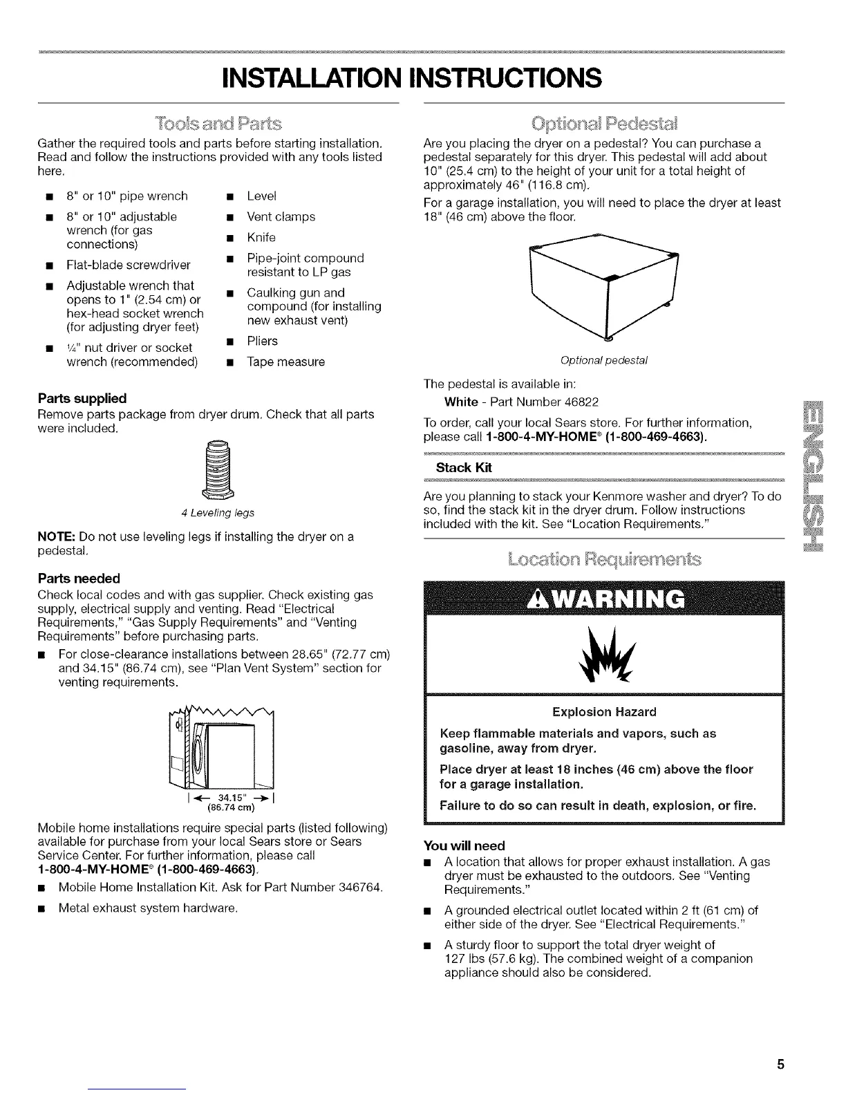 • Mobile Home Installation Kit. Ask for Part Number 346764.