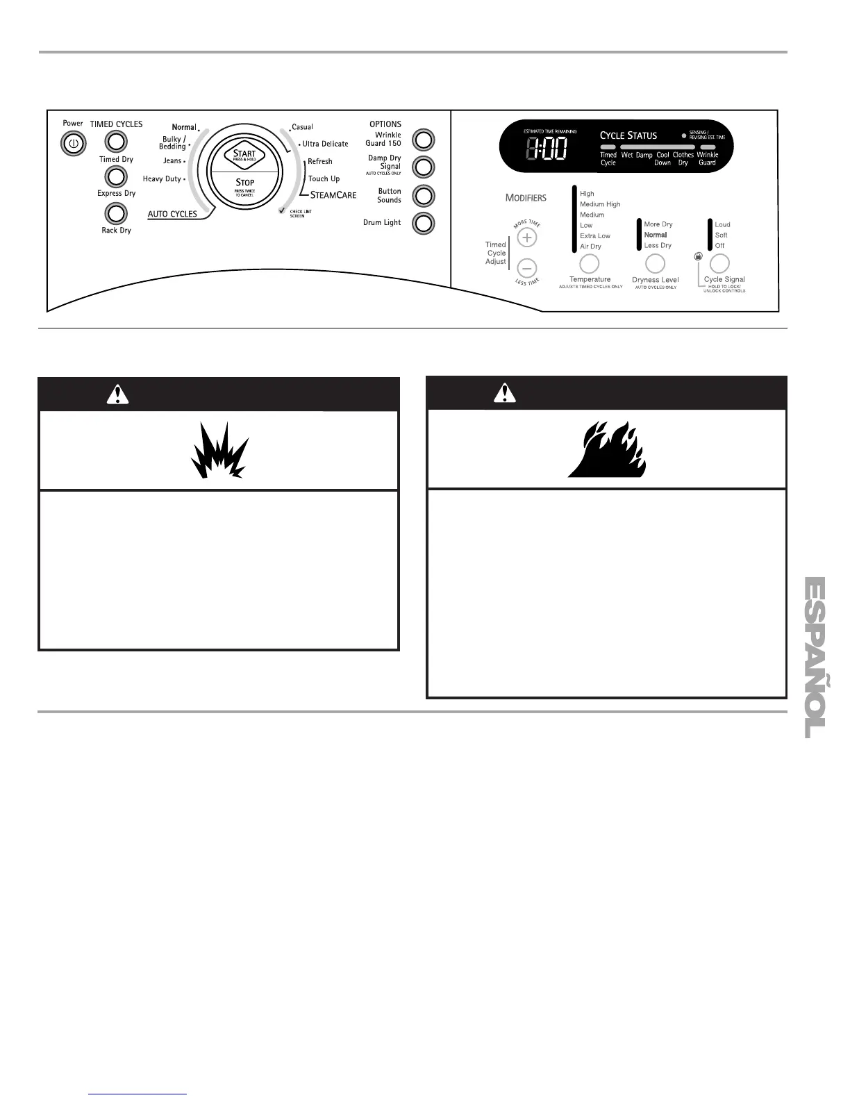 como la gasolina, alejados de la secadora.