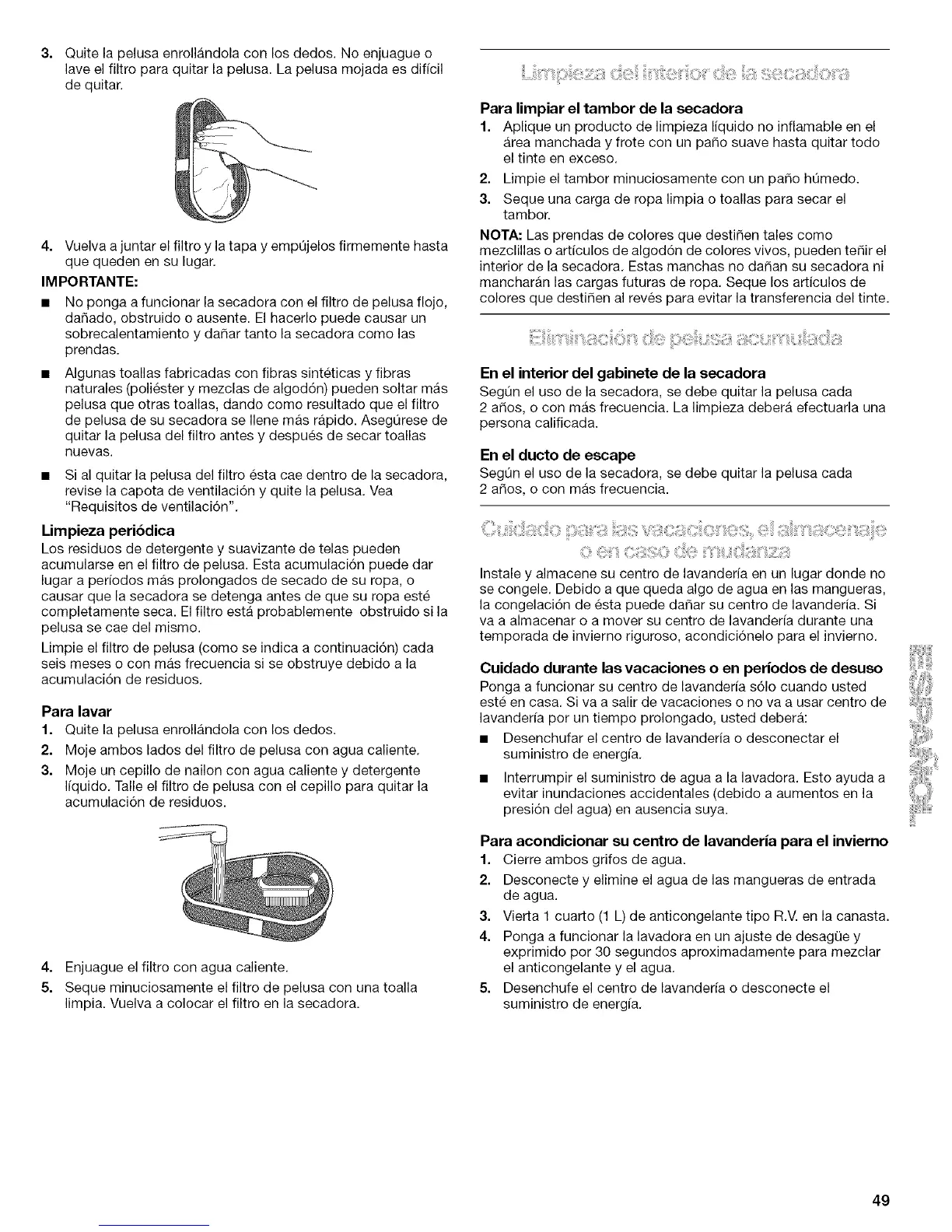 acumularse en el filtro de pelusa. Esta acumulaci6n puede dar