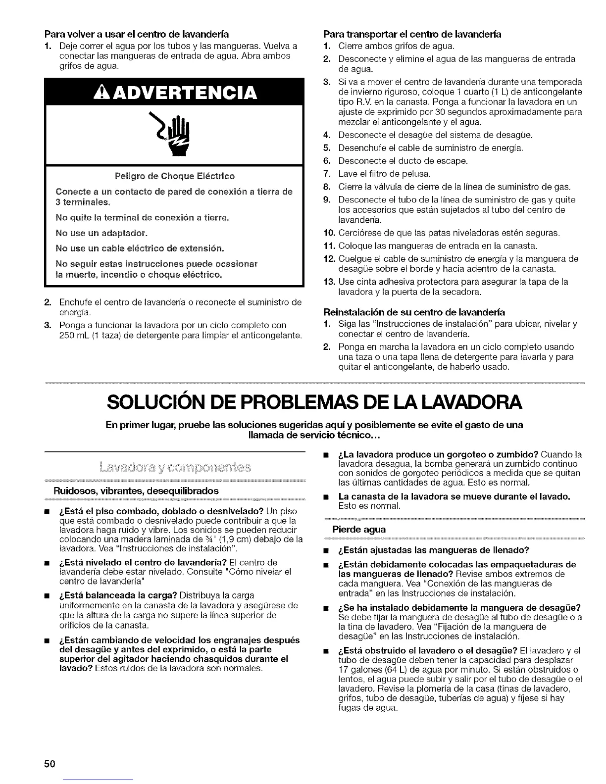 lavadora. Vea "lnstrucciones de instalaci6n".