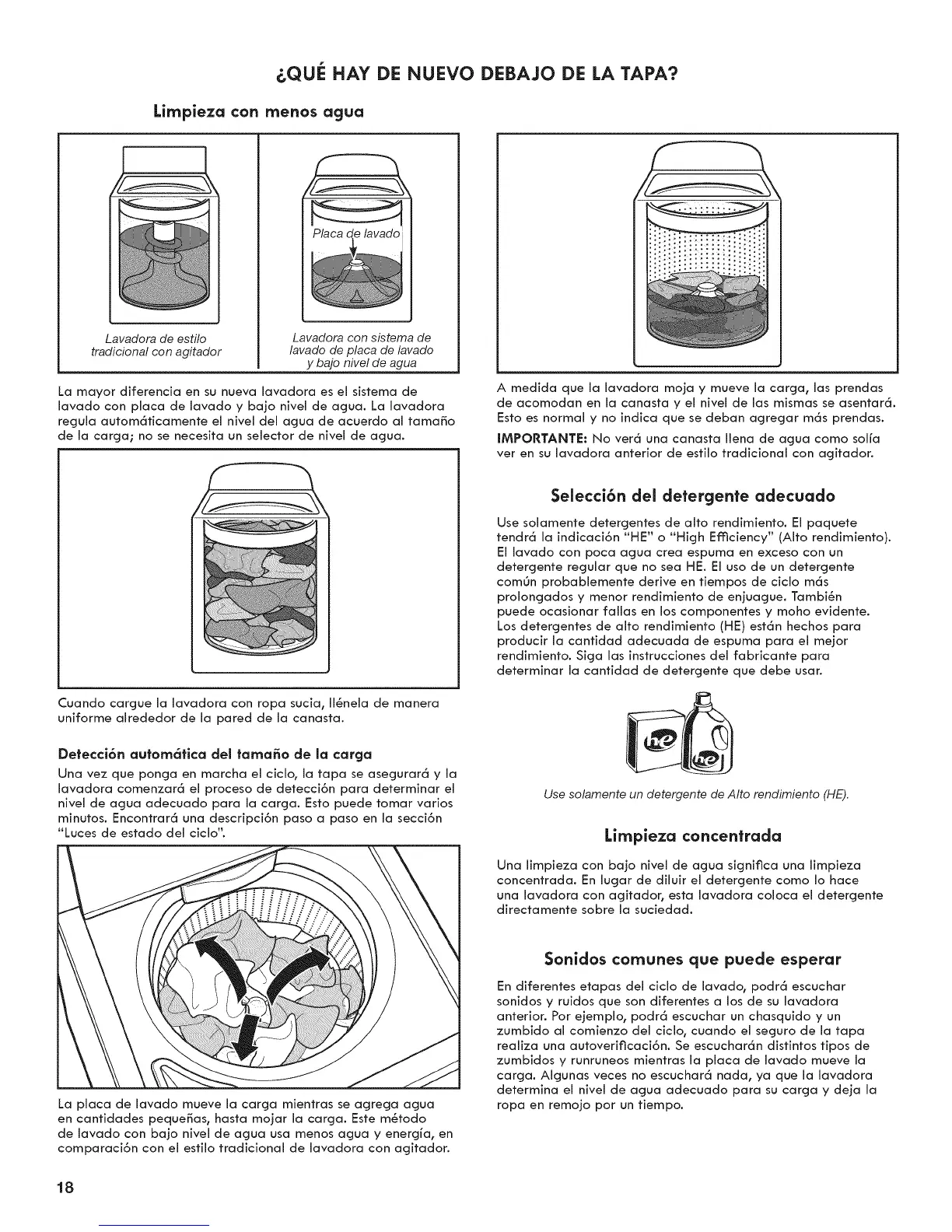 Use solamente detergentes de alto rendimiento. El paquete