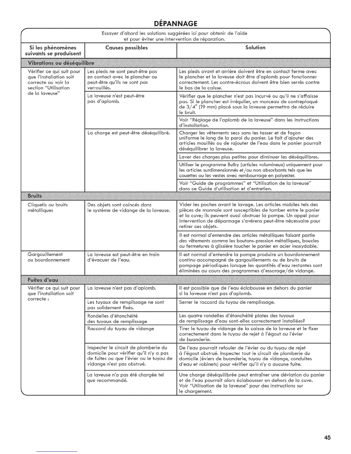 V@rifier ce qui suit pour La laveuse n_est pas d_oplomb0