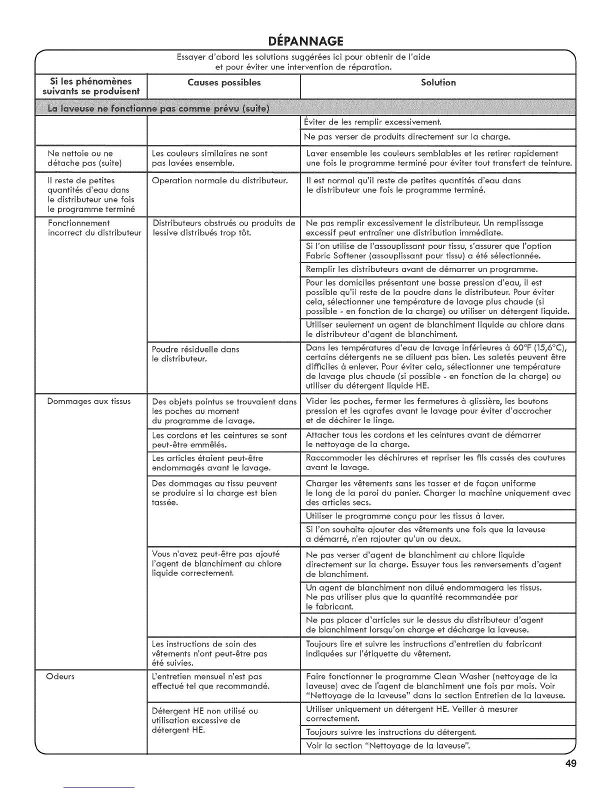 "Nettoyage de la laveuse _'darts la section Entretien de la laveuse,