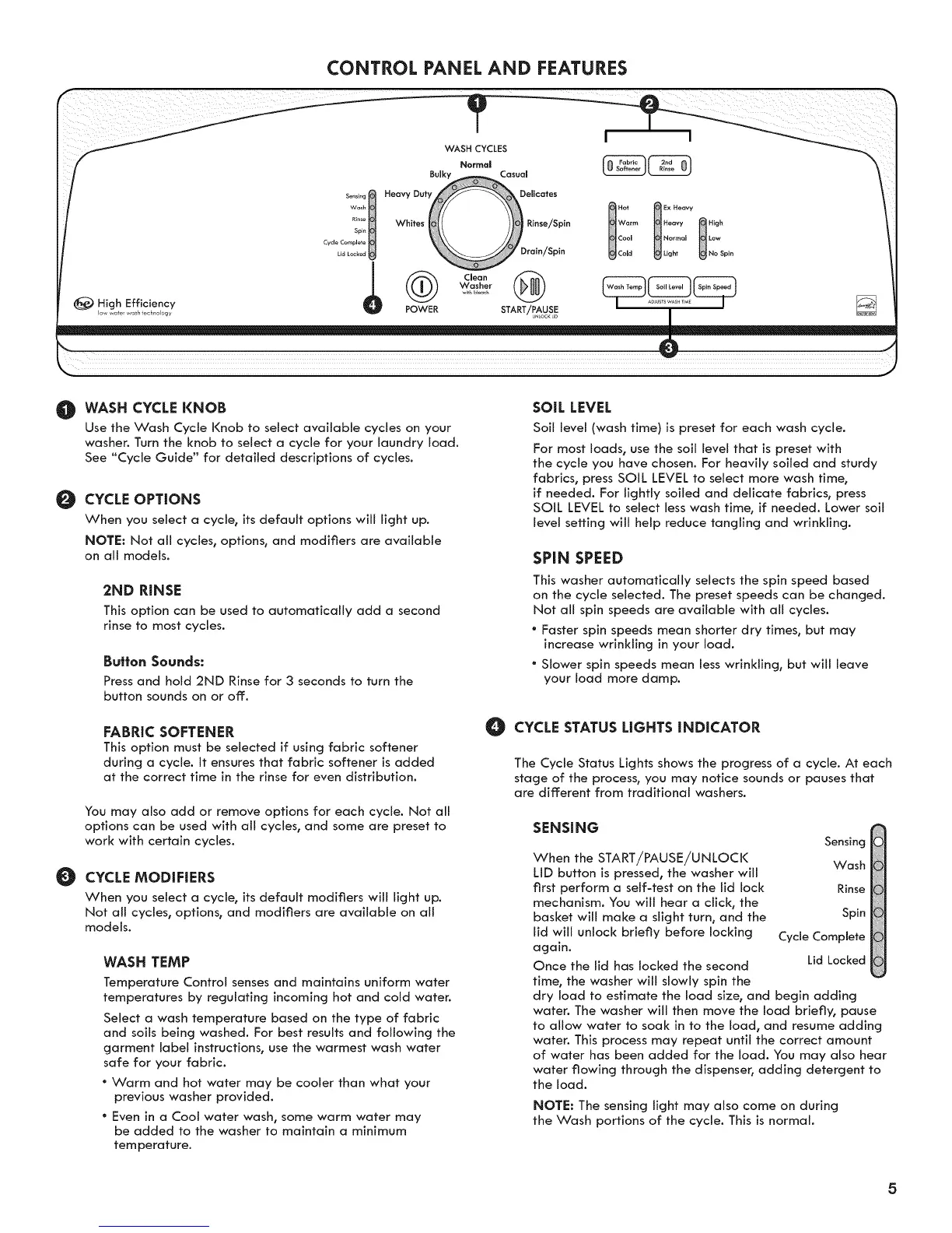 CONTROL PANEL AND FEATURES