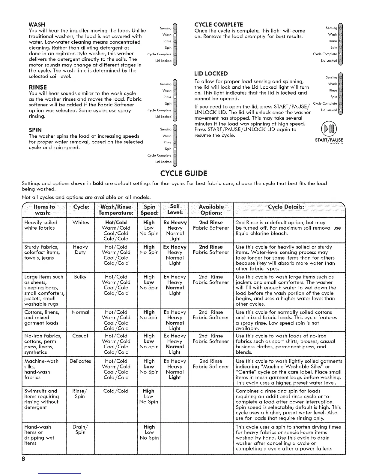 Cycle: Wash/Rinse Spi n Soil Available Cycle Detads: