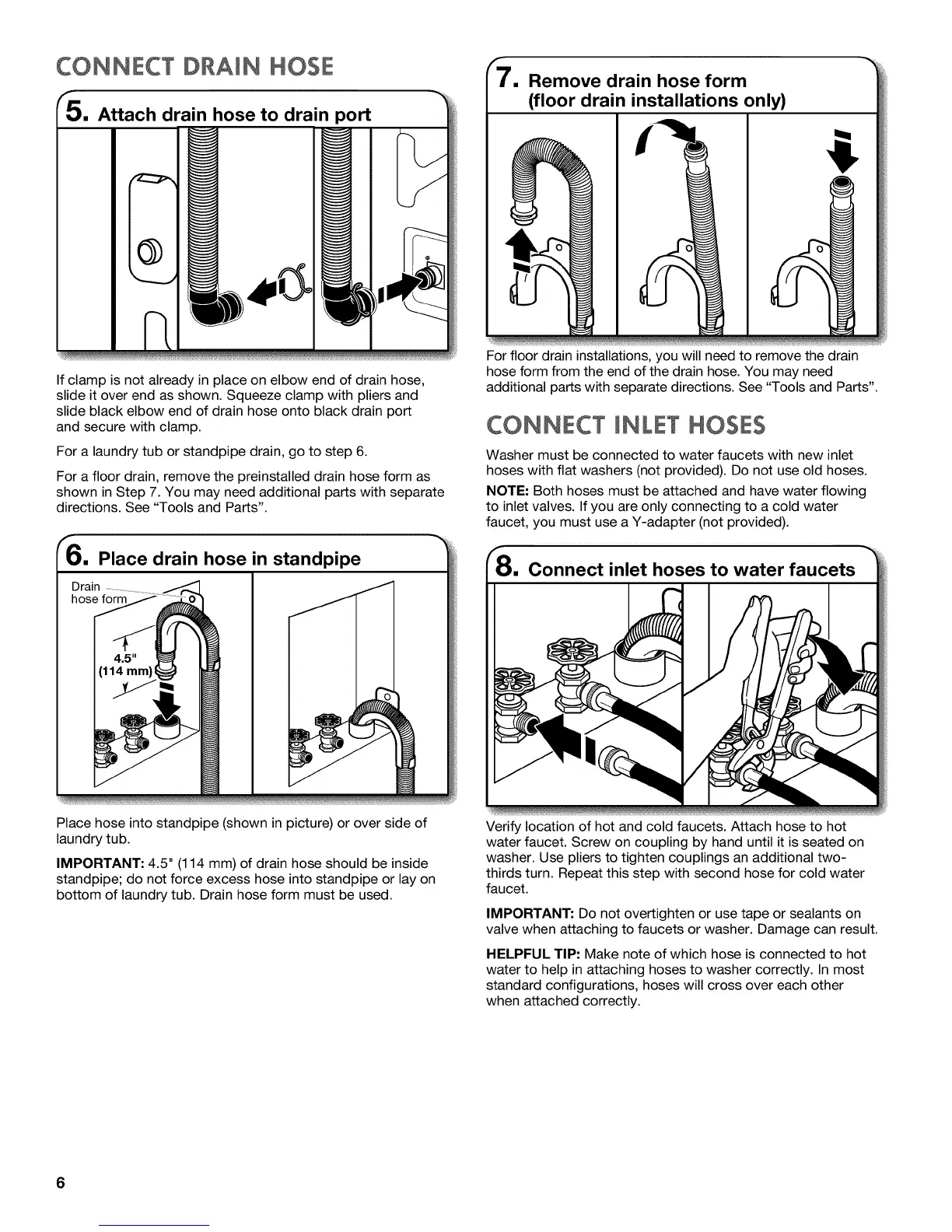 IMPORTANT: 4.5" (114 mm) of drain hose should be inside