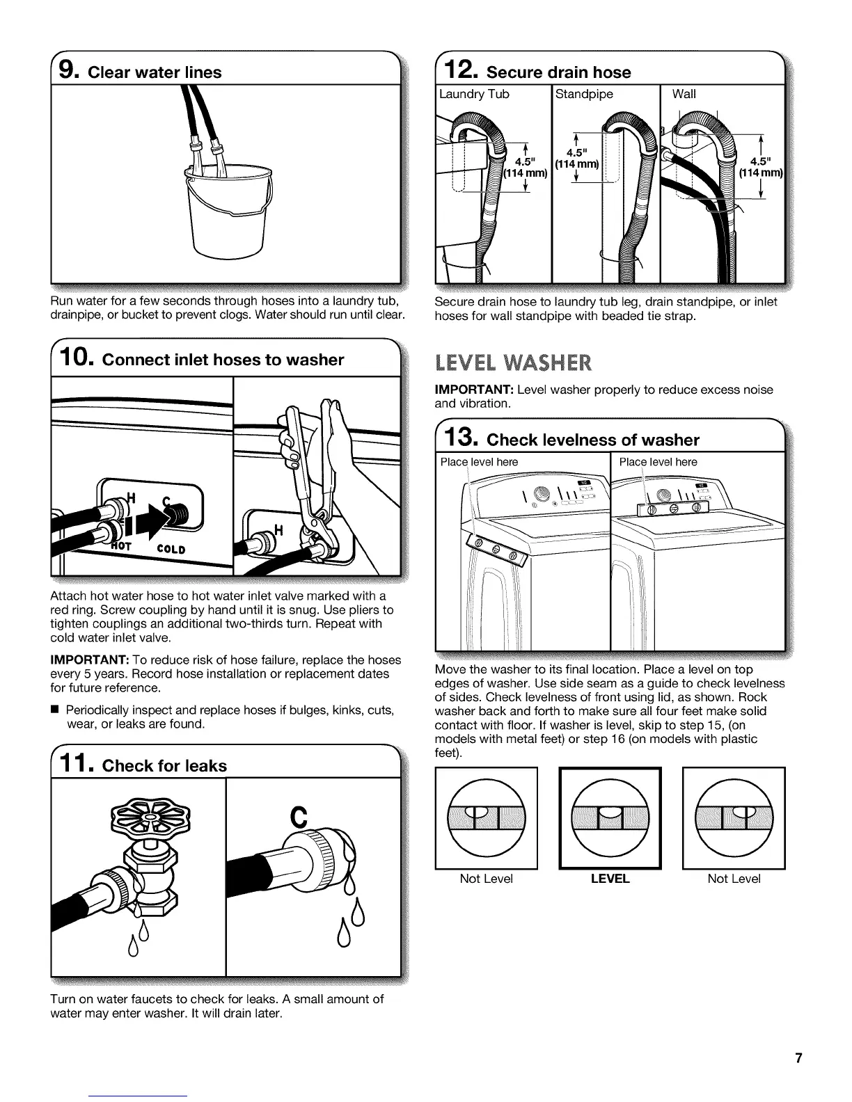 12. Secure drain hose
