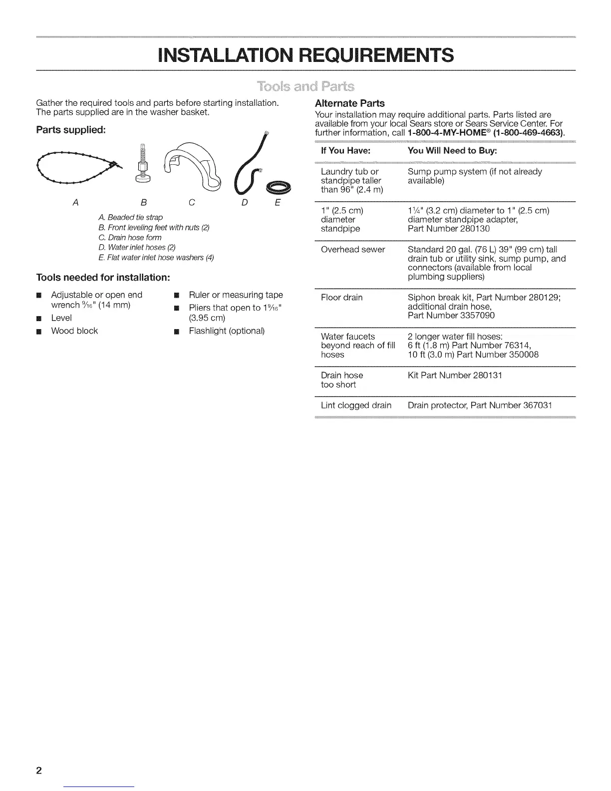 Your installation may require additional parts. Parts listed are