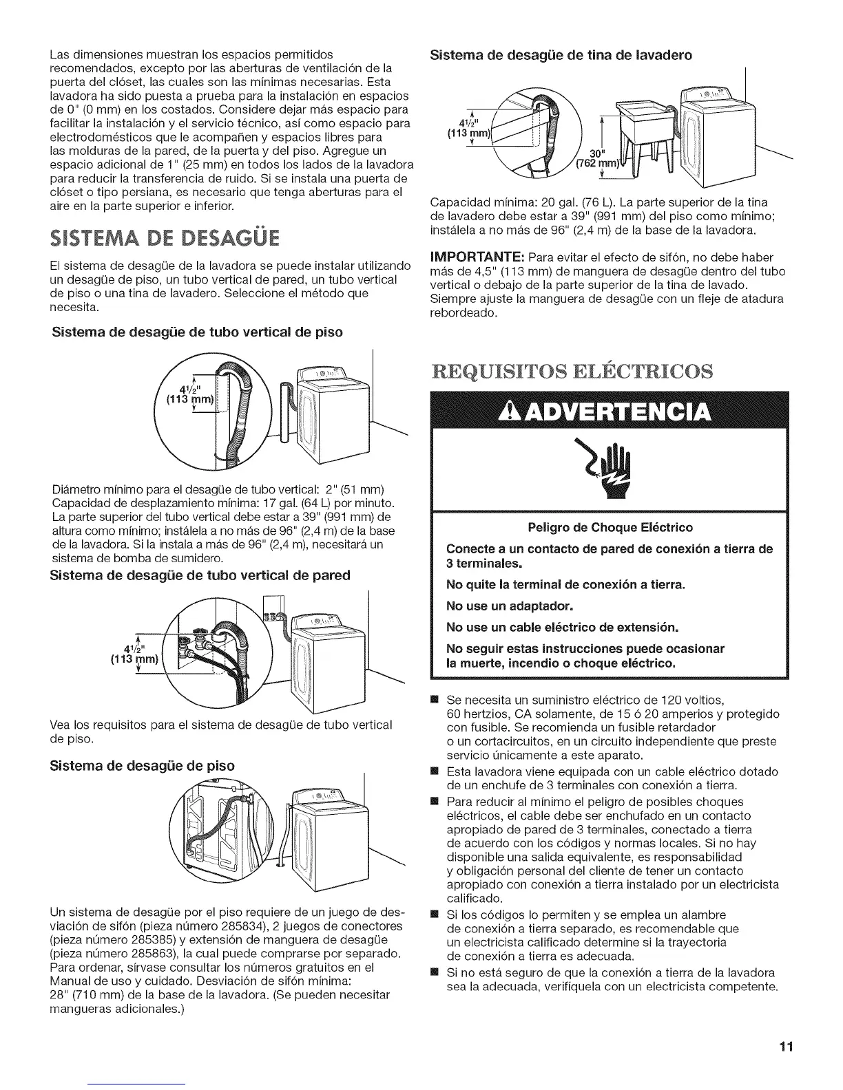 (pieza nQmero 285385) y extensi6n de manguera de desagQe