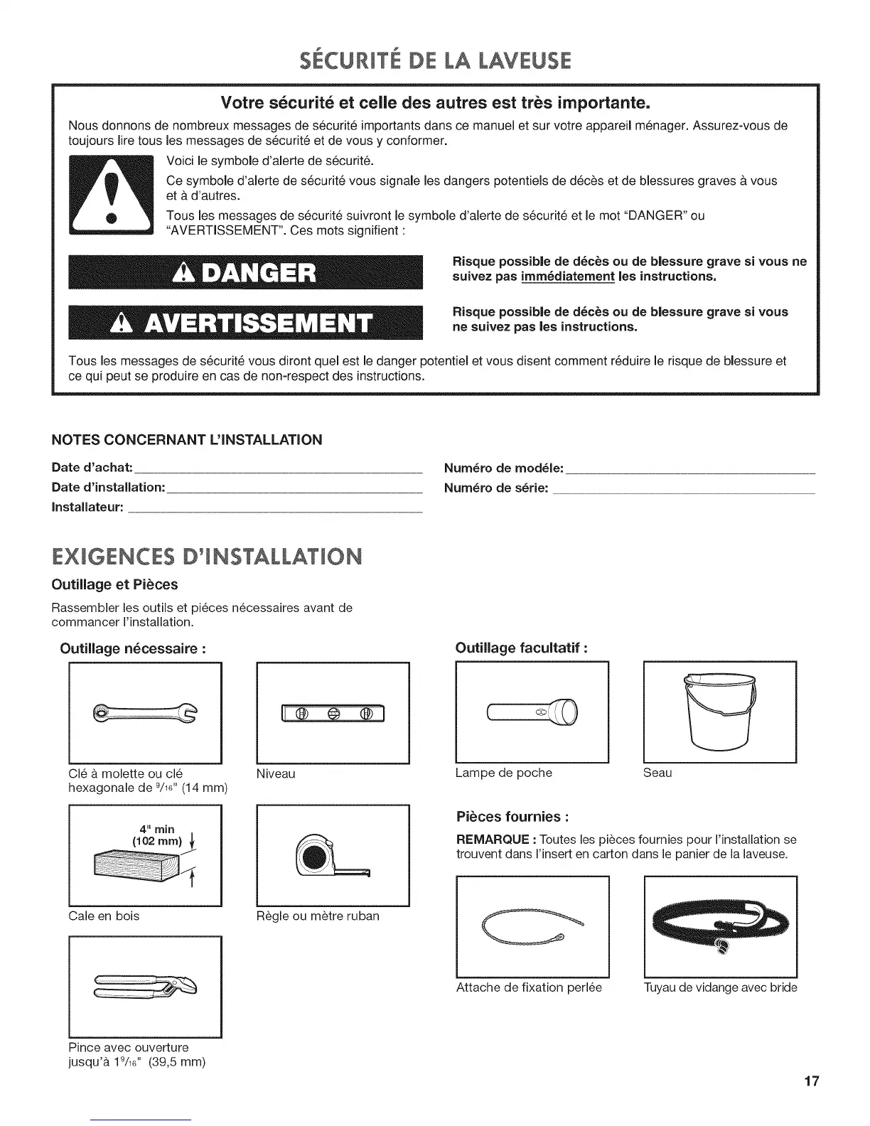 Rassembler les outils et pi6ces n6cessaires avant de