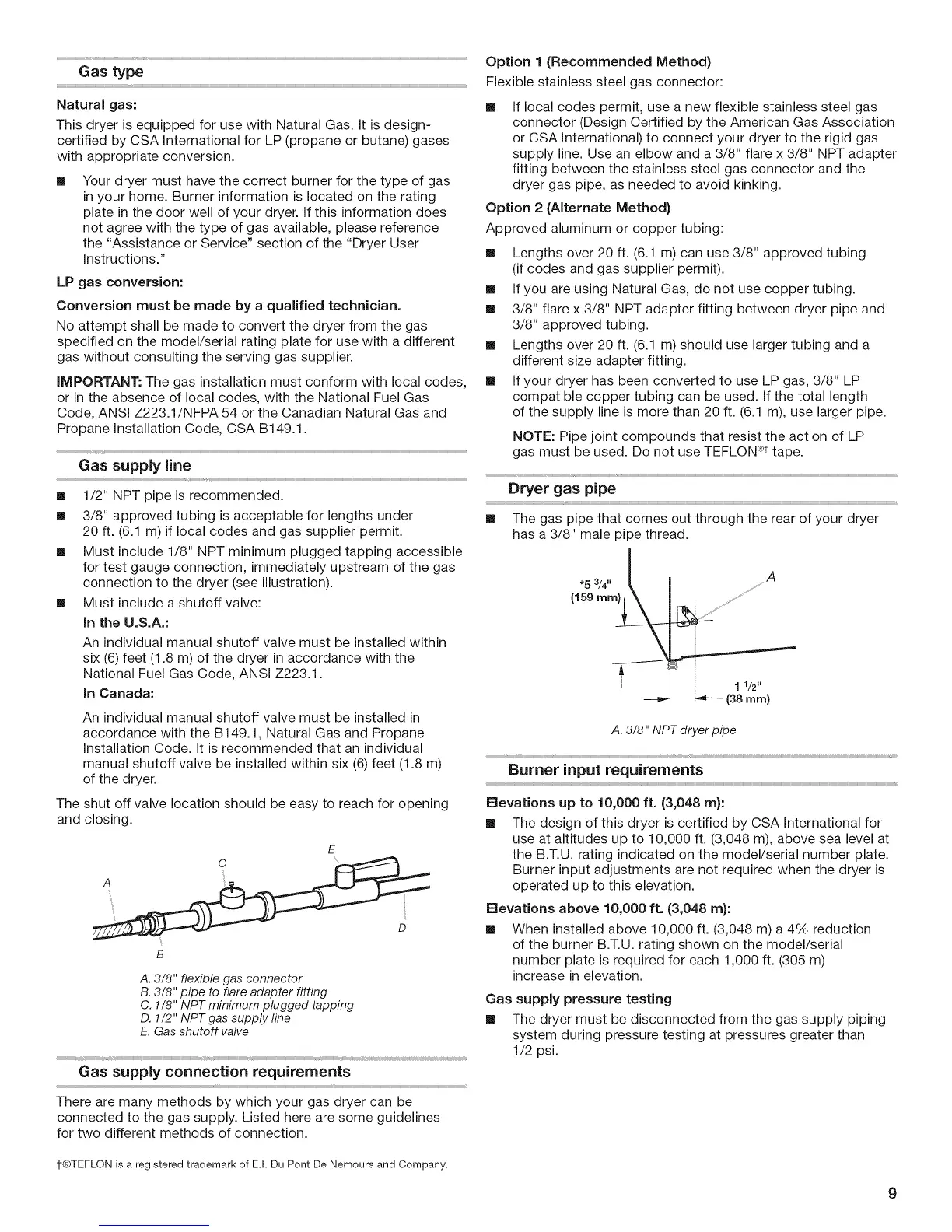 [] If your dryer has been converted to use LP gas, 3/8" LP