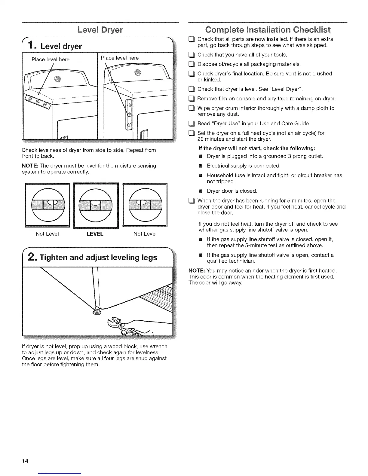 [_ Check that dryer is level. See "Level Dryer".