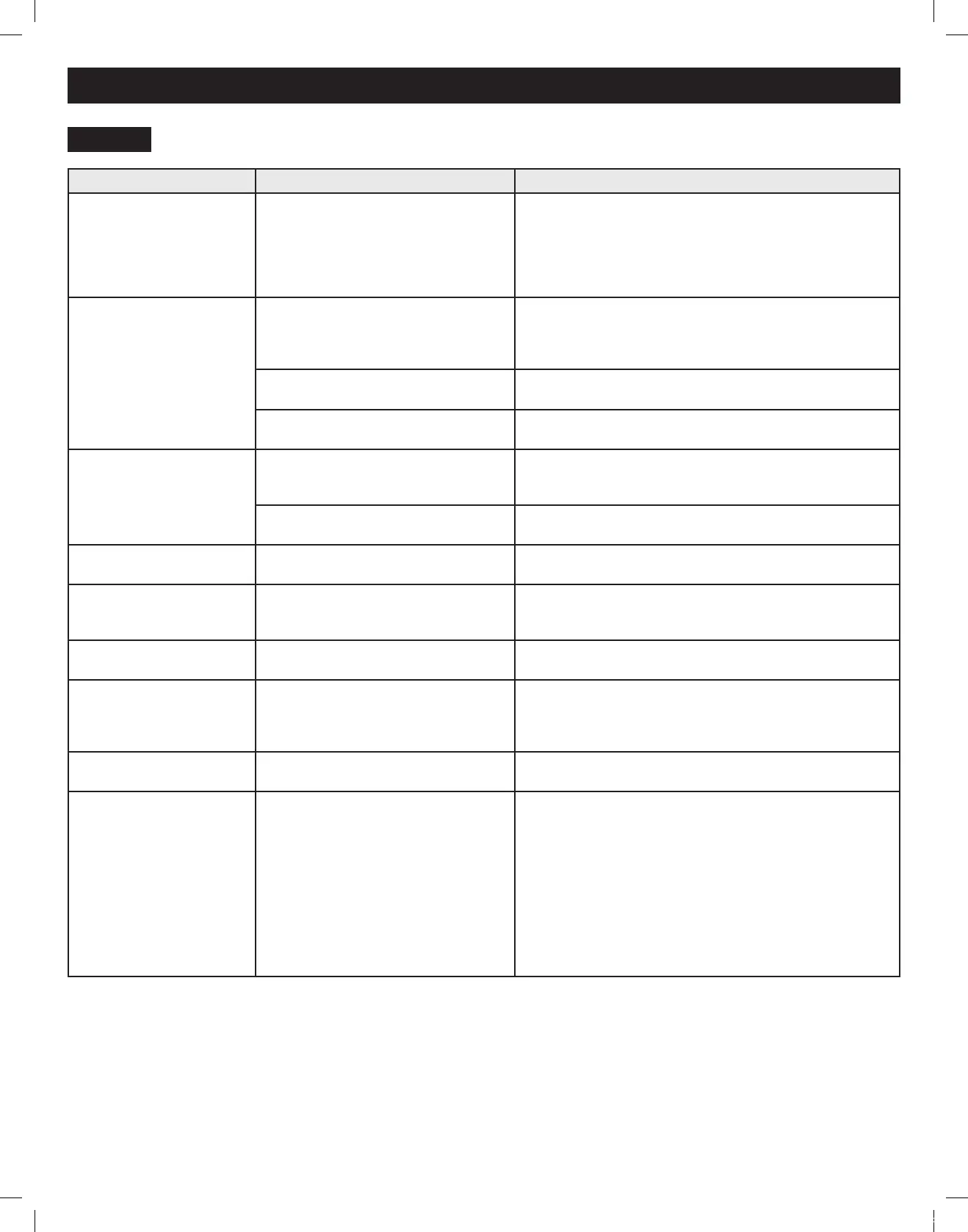 Problem Possible Causes Solutions