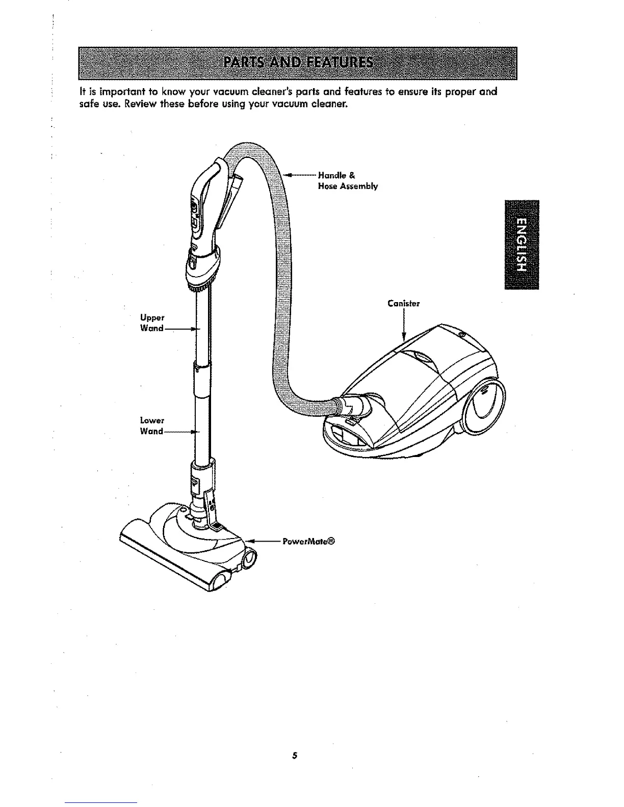It is important to know your vacuum cleaner's parts and features to ensure its proper and