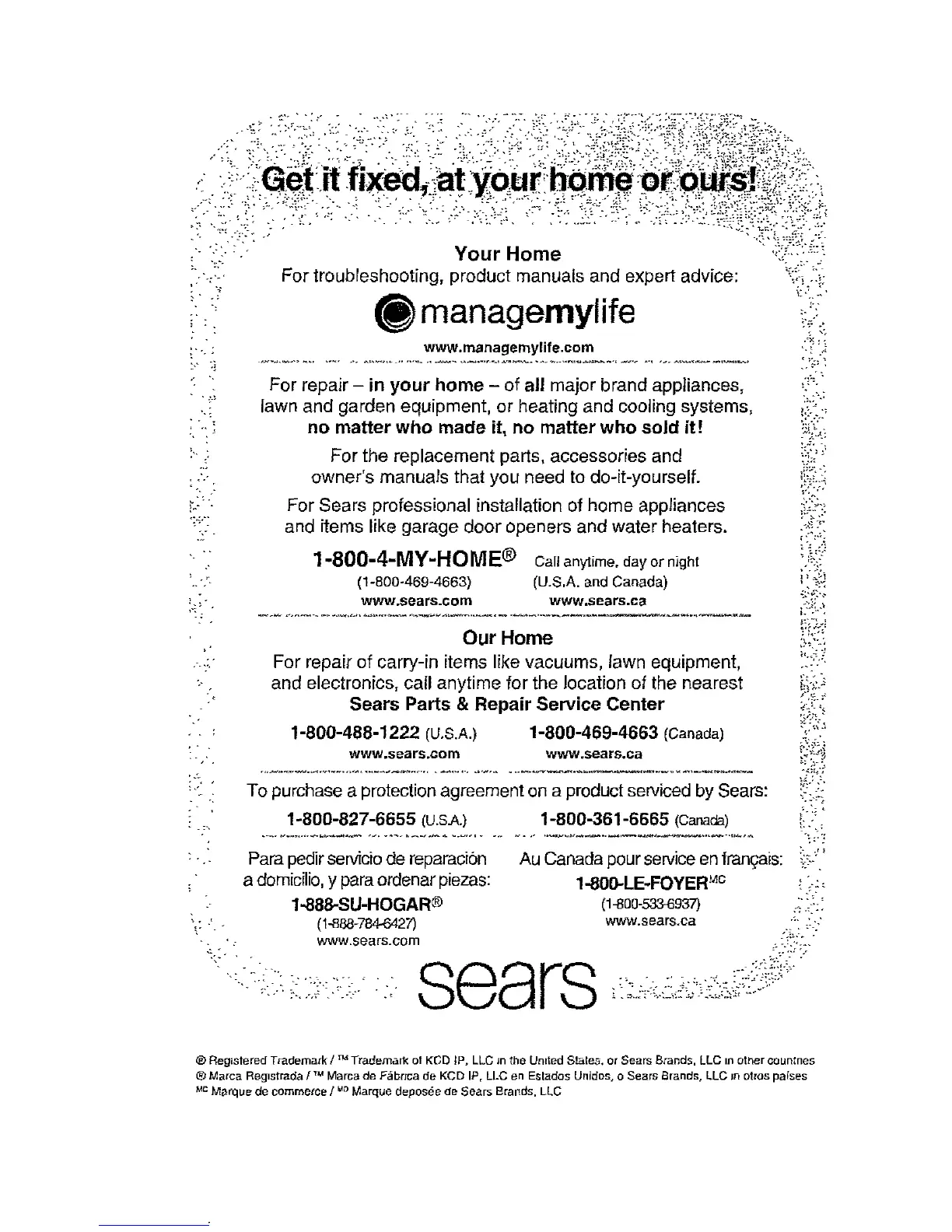 ® Marca Reg=strada / TM Marca de F&bnca de KCD IP, LLC en Estados Unities, o Sears Brands, LLC m otroa pa[ses
