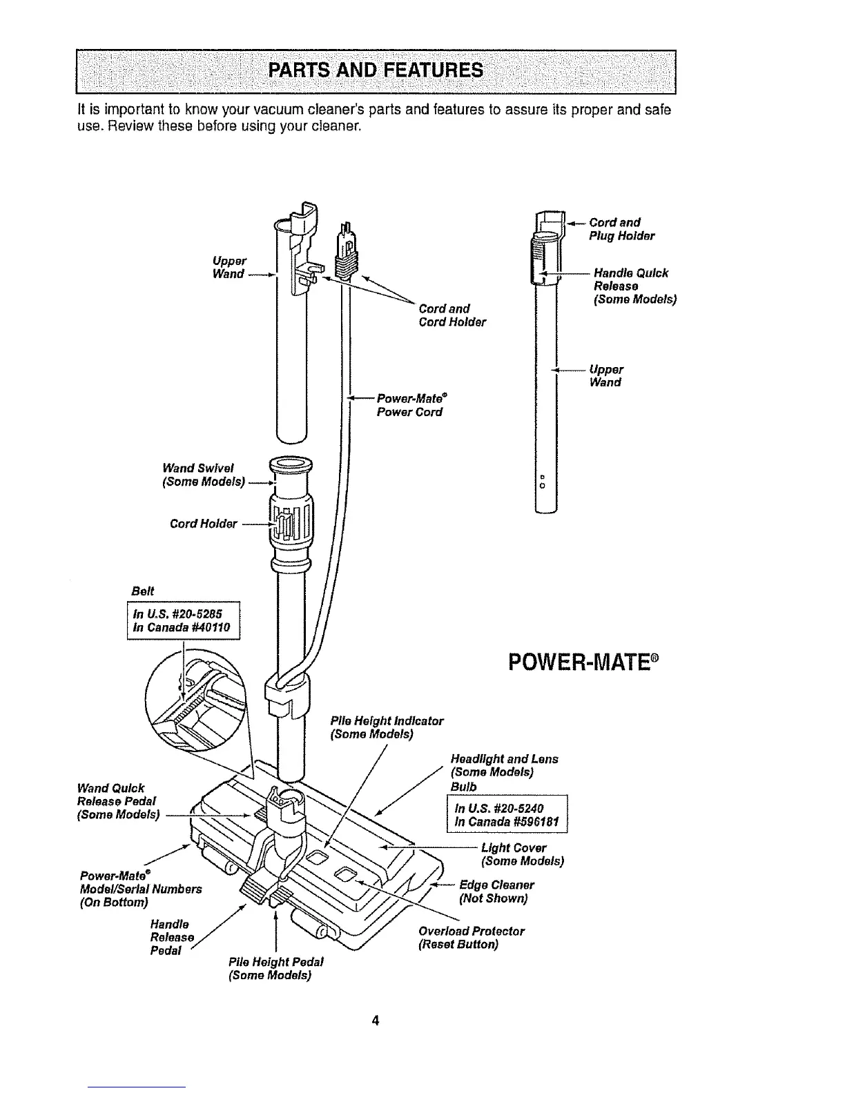 It is important to know your vacuum cleaner's parts and features to assure its proper and safe