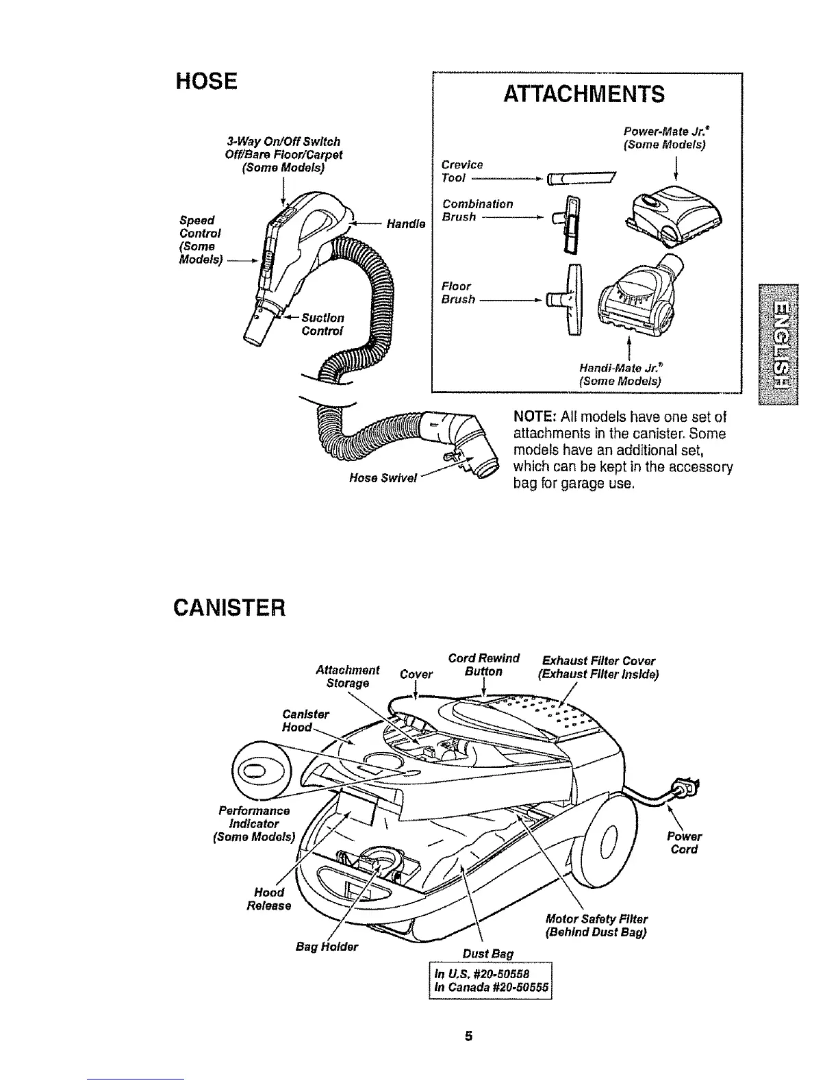 attachments in the canister, Some