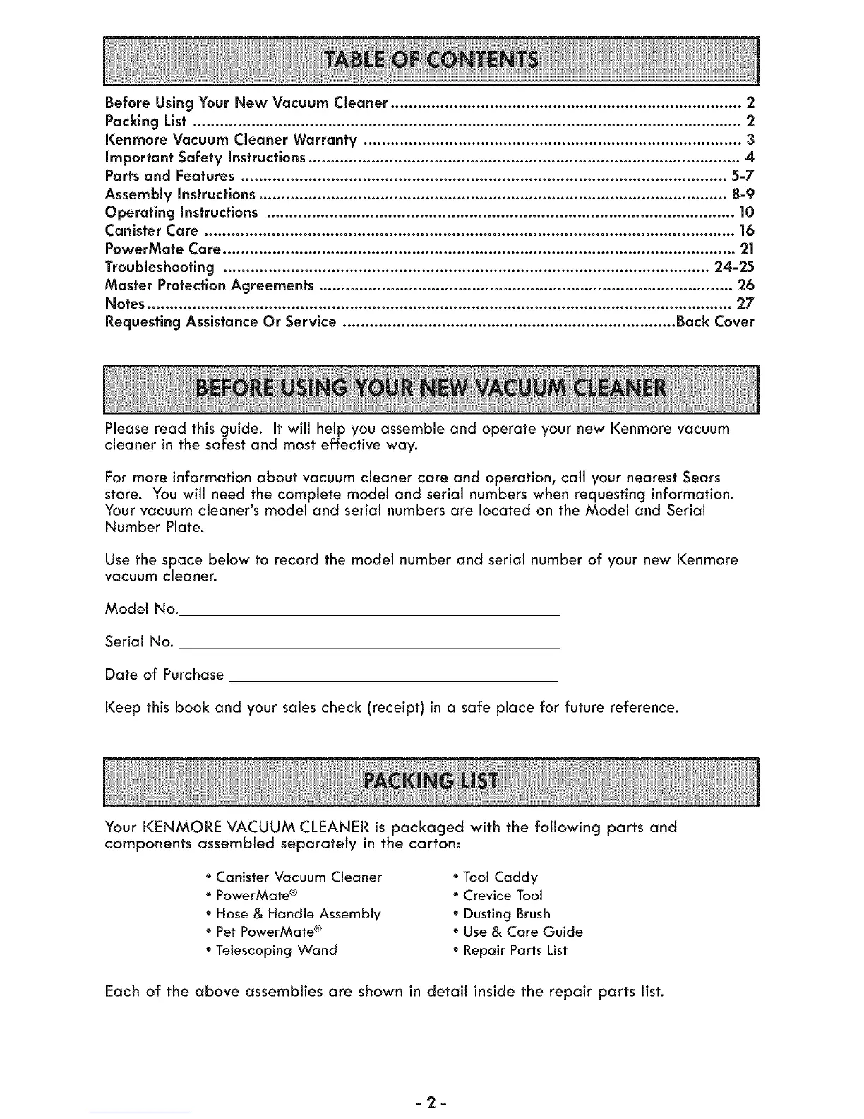 Kenmore Vacuum Cleaner Warranty .................................................................................... 3