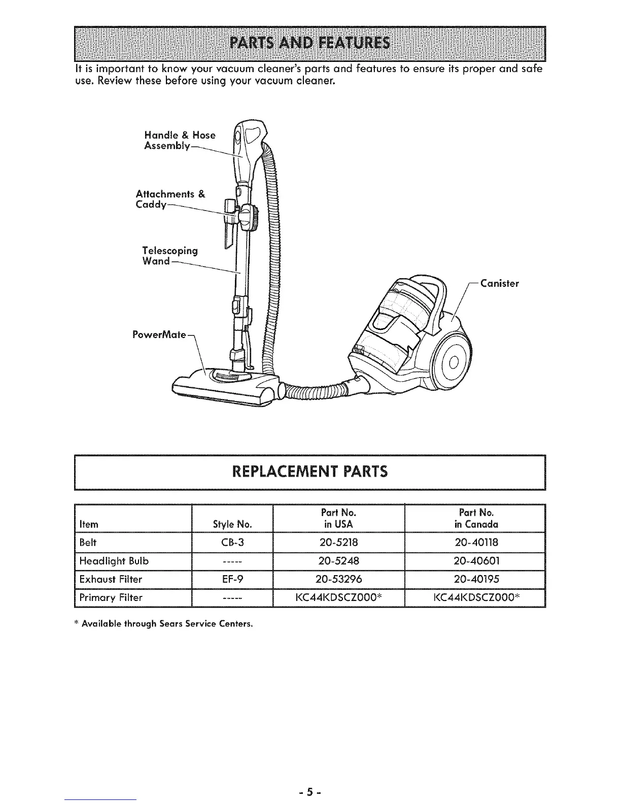 itisimportant to know your vacuum cleaner's parts and features to ensure itsproper and safe