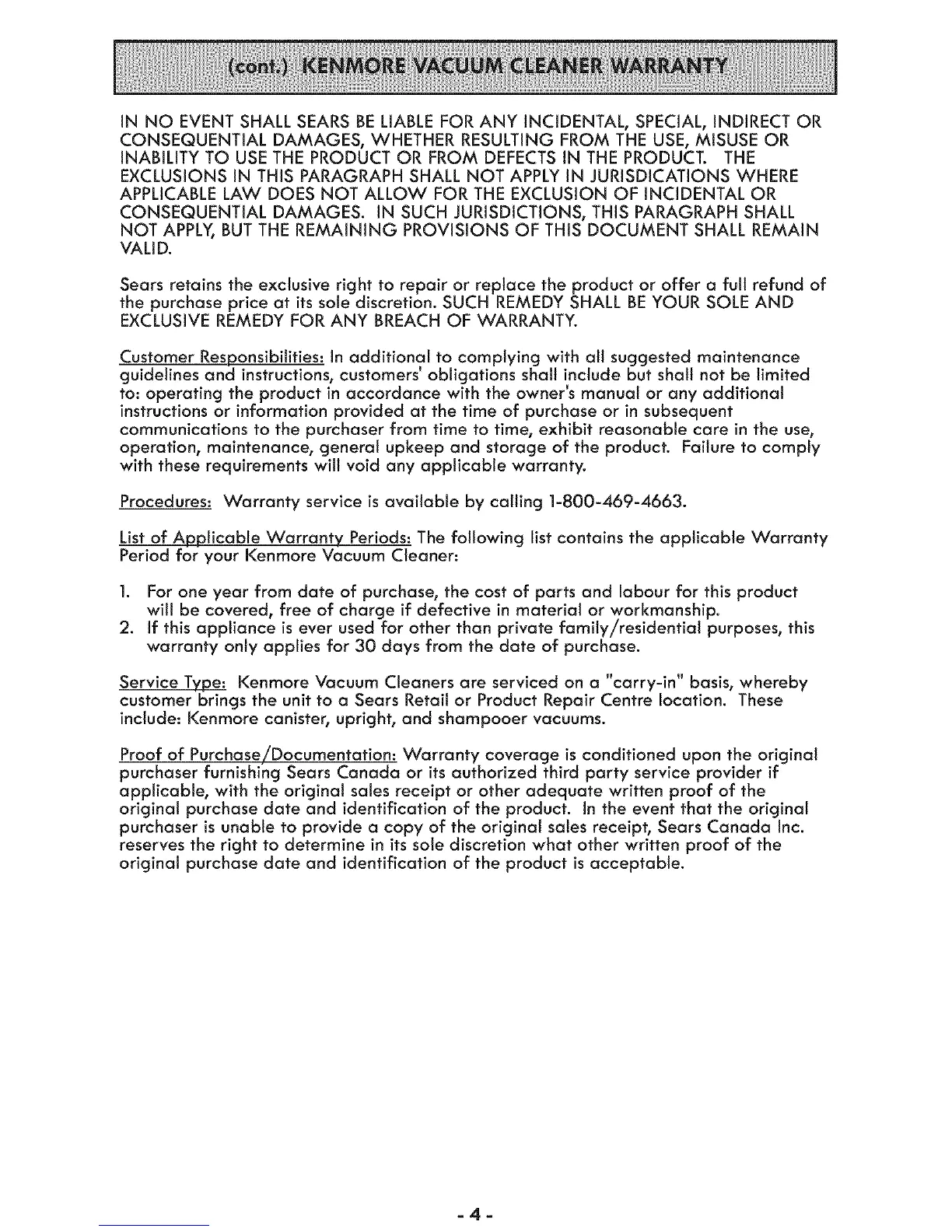 Service Type: Kenmore Vacuum Cleaners are serviced on a "carry-in" basis,whereby