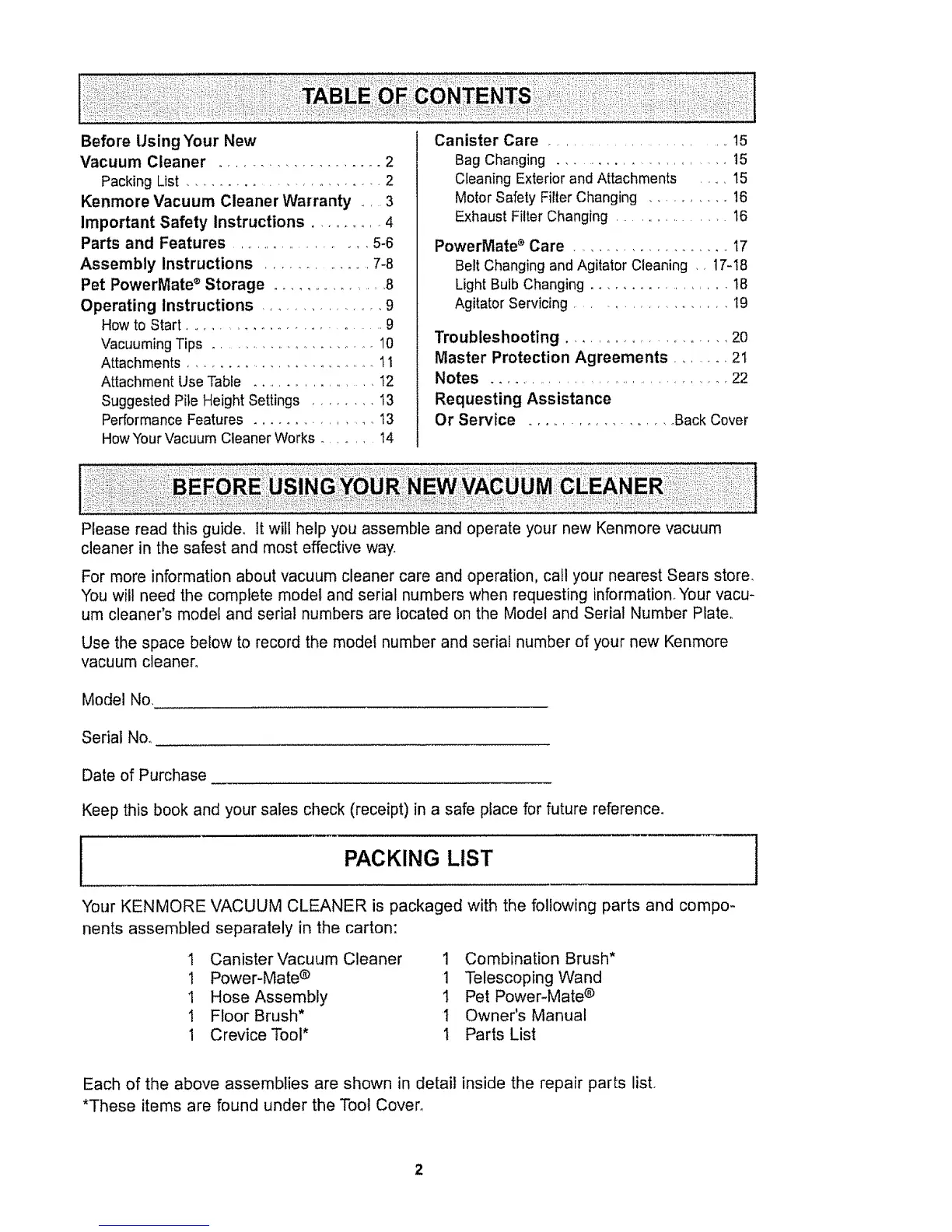 Kenmore Vacuum Cleaner Warranty .... 3