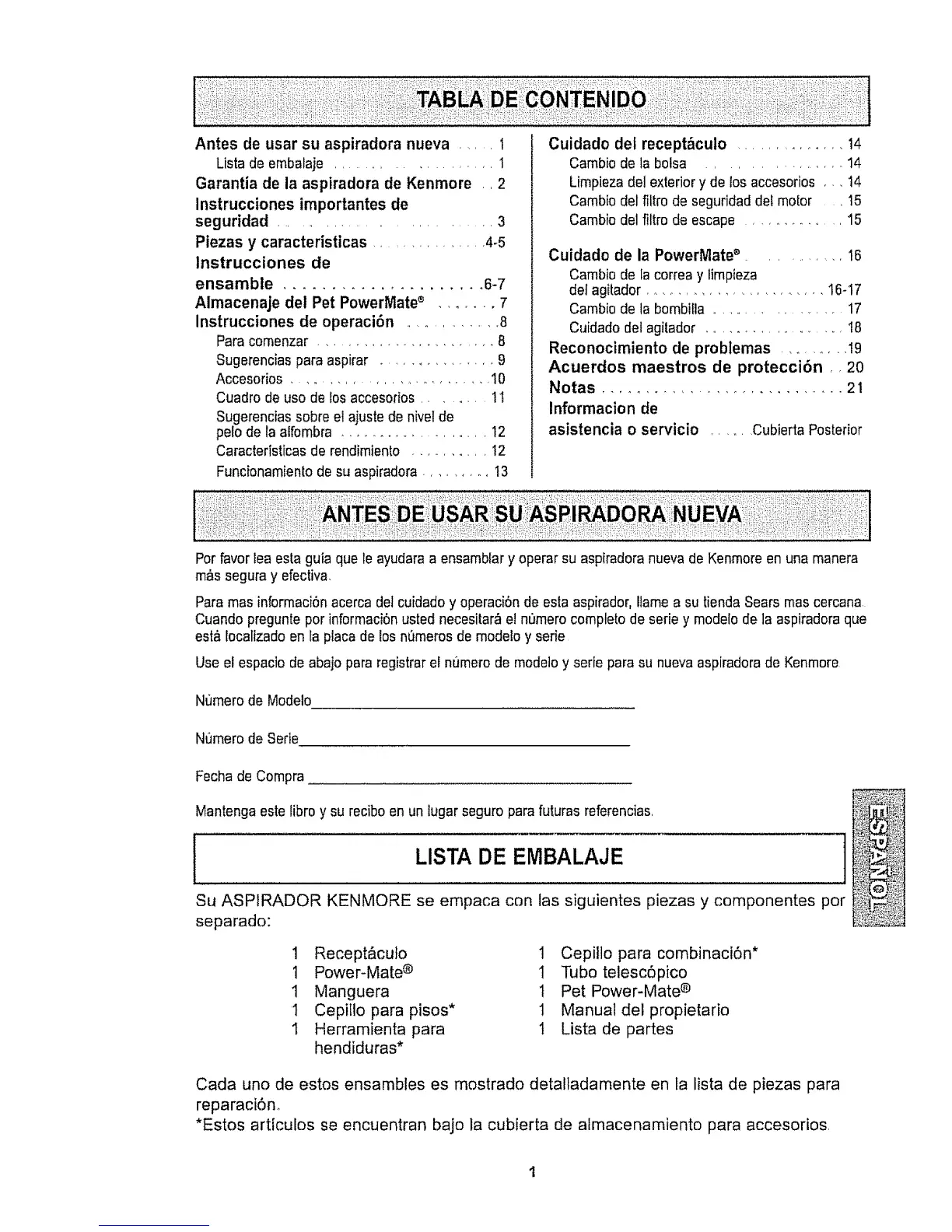Antes de usar su aspiradora nueva ...... 1